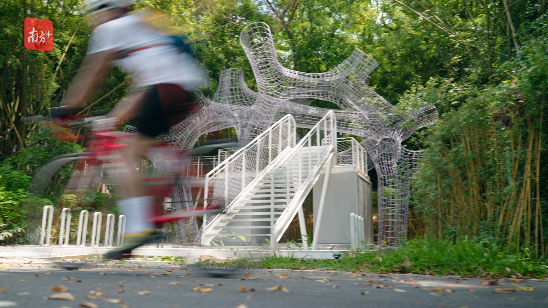 在博罗的显岗水库边,有一处特别的空间,兼具艺术性与功能性,它就是风袂驿。8片轻盈的顶盖,像鸟儿展开的翅膀,呼应骑行运动的自由与速度感。
