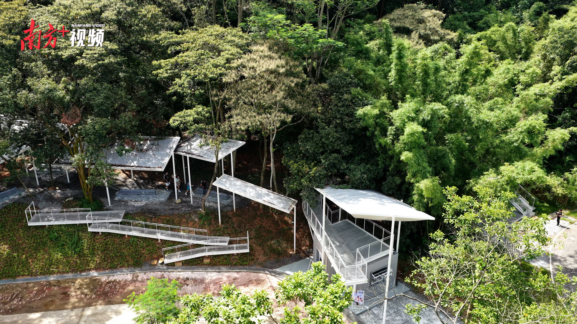 踩累了,可以把车停好,在平台上坐一坐,呼吸林间的新鲜空气,听风穿过树梢的声音。