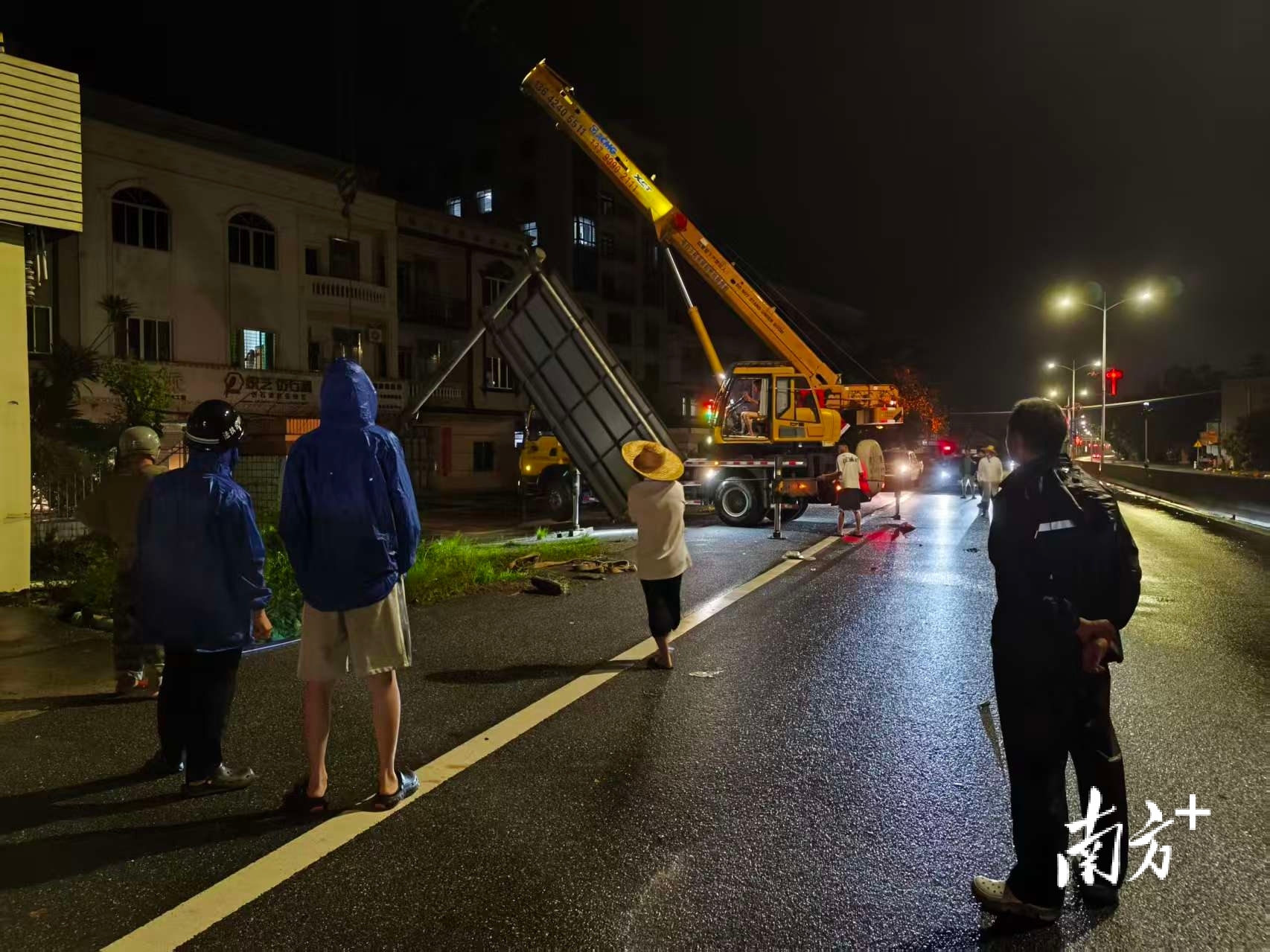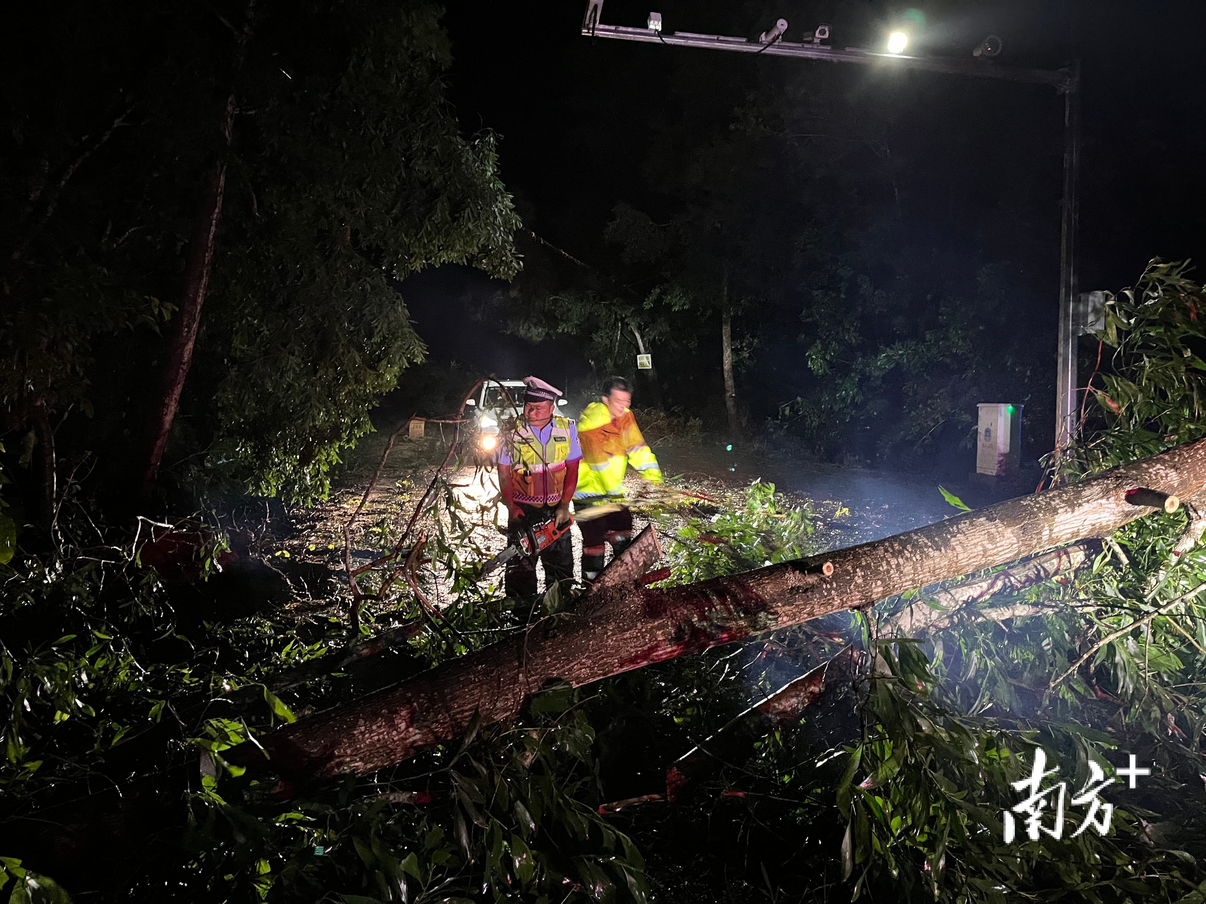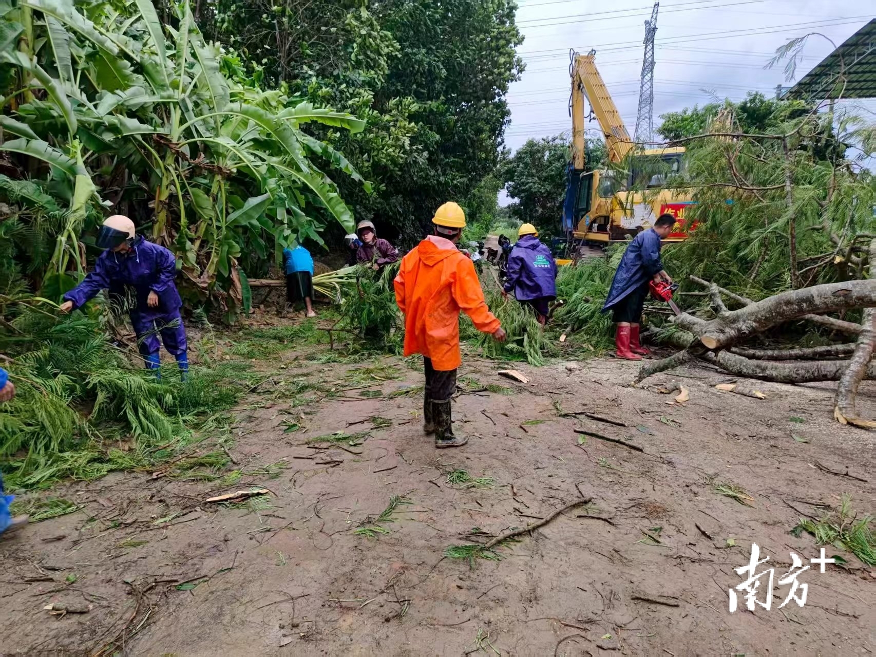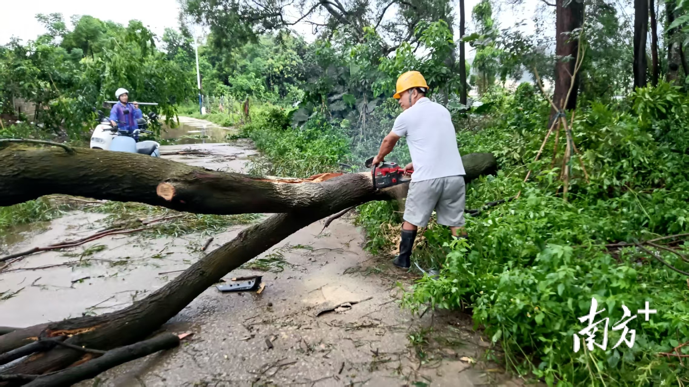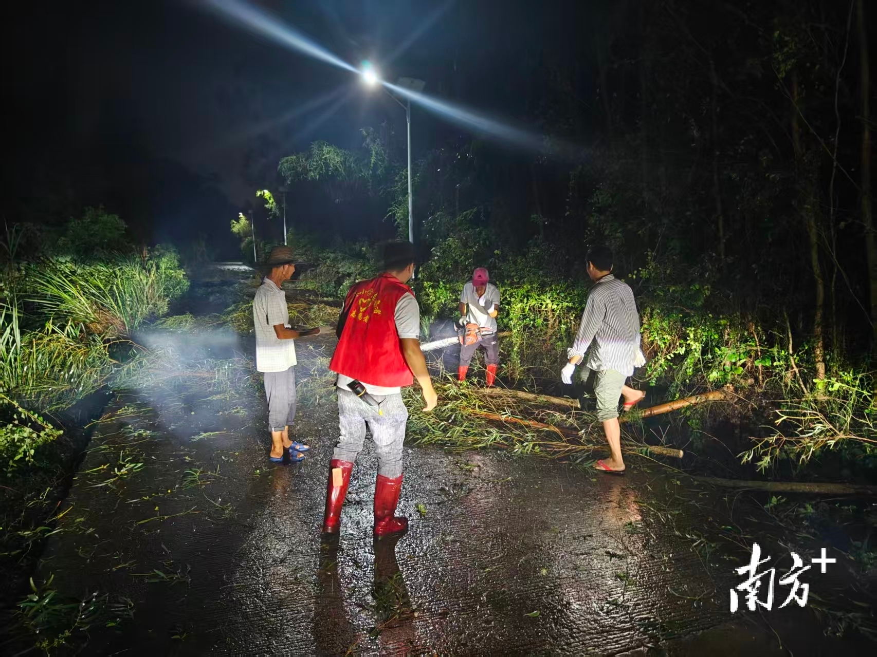 树仔镇组织镇村党员干部、应急抢险队及时清理被台风吹倒的树木。