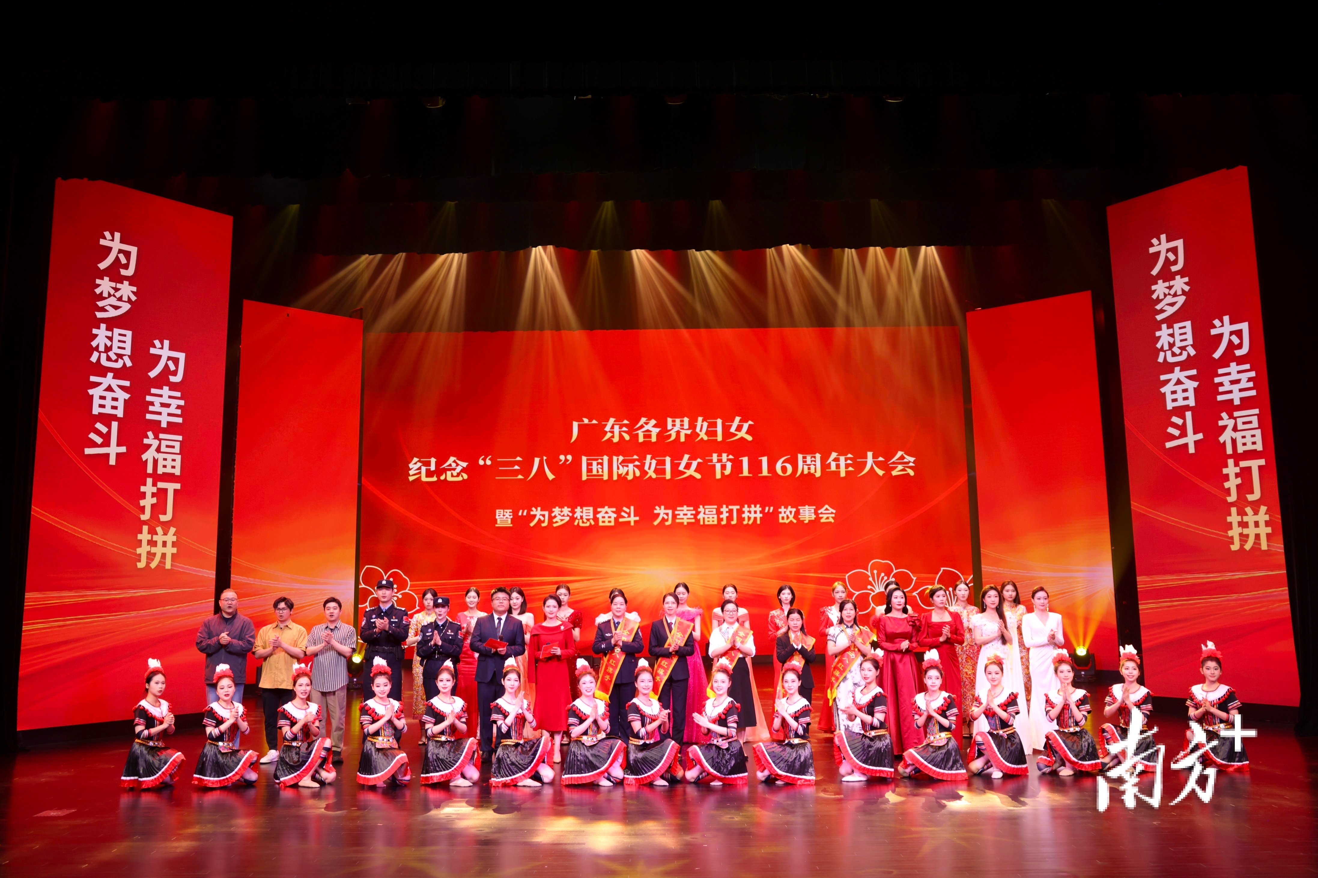 3月6日,广东各界妇女纪念“三八”国际妇女节116周年大会暨“为梦想奋斗 为幸福打拼”故事会在广州举行。现场,获2025年度全国三八红旗手、全国三八红旗集体、全国巾帼文明岗的代表登台领奖,5位先进典型分享奋斗故事。
