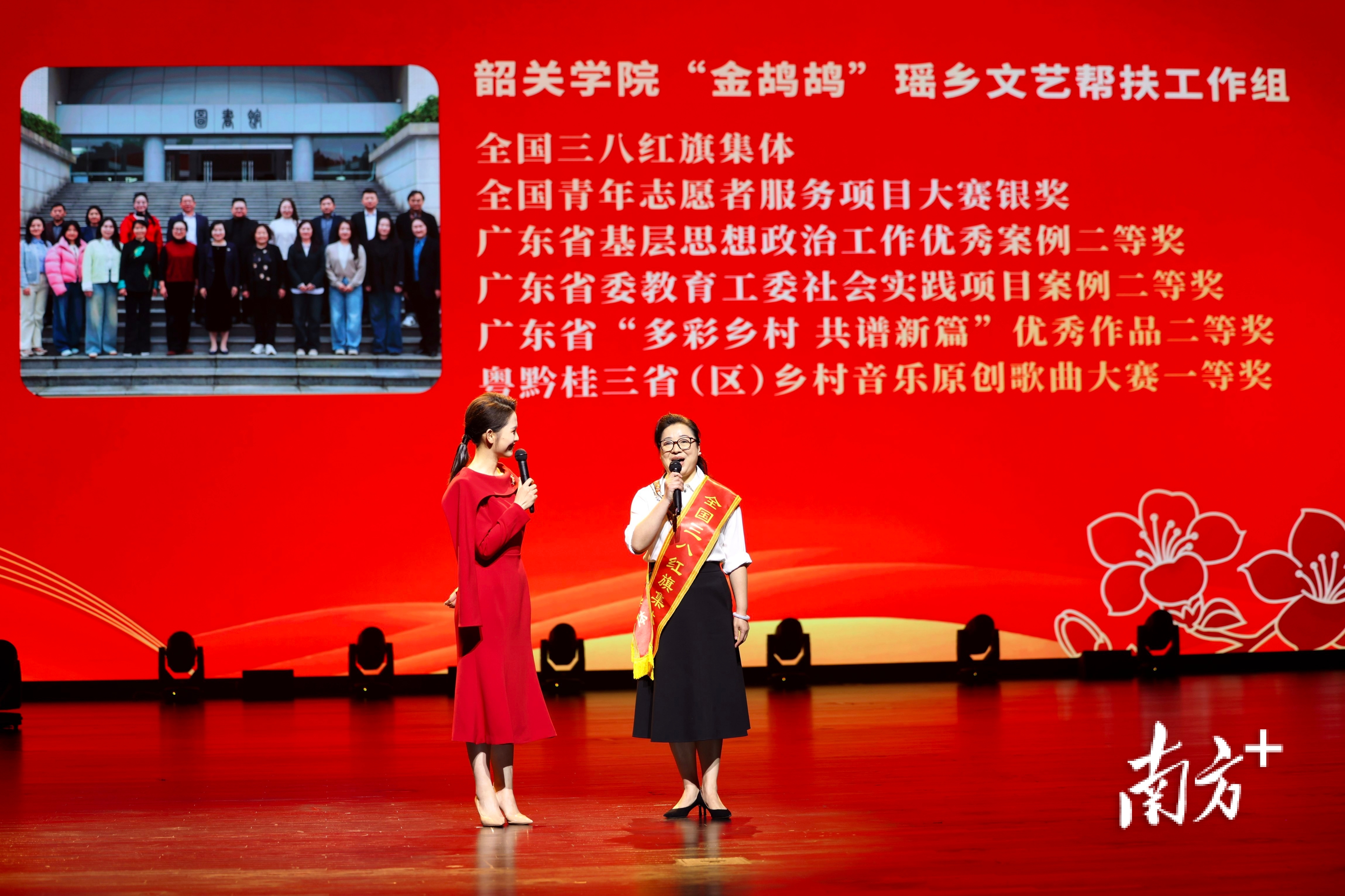 2019年,韶关学院音乐与舞蹈学院共同组建“金鸪鸪”瑶乡文艺帮扶工作组。这支平均年龄40.5岁、女性占比70.8%的巾帼团队,扎根瑶乡千余个日夜,足迹遍布乳源所有乡镇和103个行政村,开展现场排练350余次、6场精品展演每场观众超1000人,惠及群众超10万人次,实现“乡乡有活动、村村有参与、人人有收获”;累计为瑶乡创编原创文艺作品45个、提升现有作品35个,推动当地文艺队伍数量增长194%、队员人数增长185%。