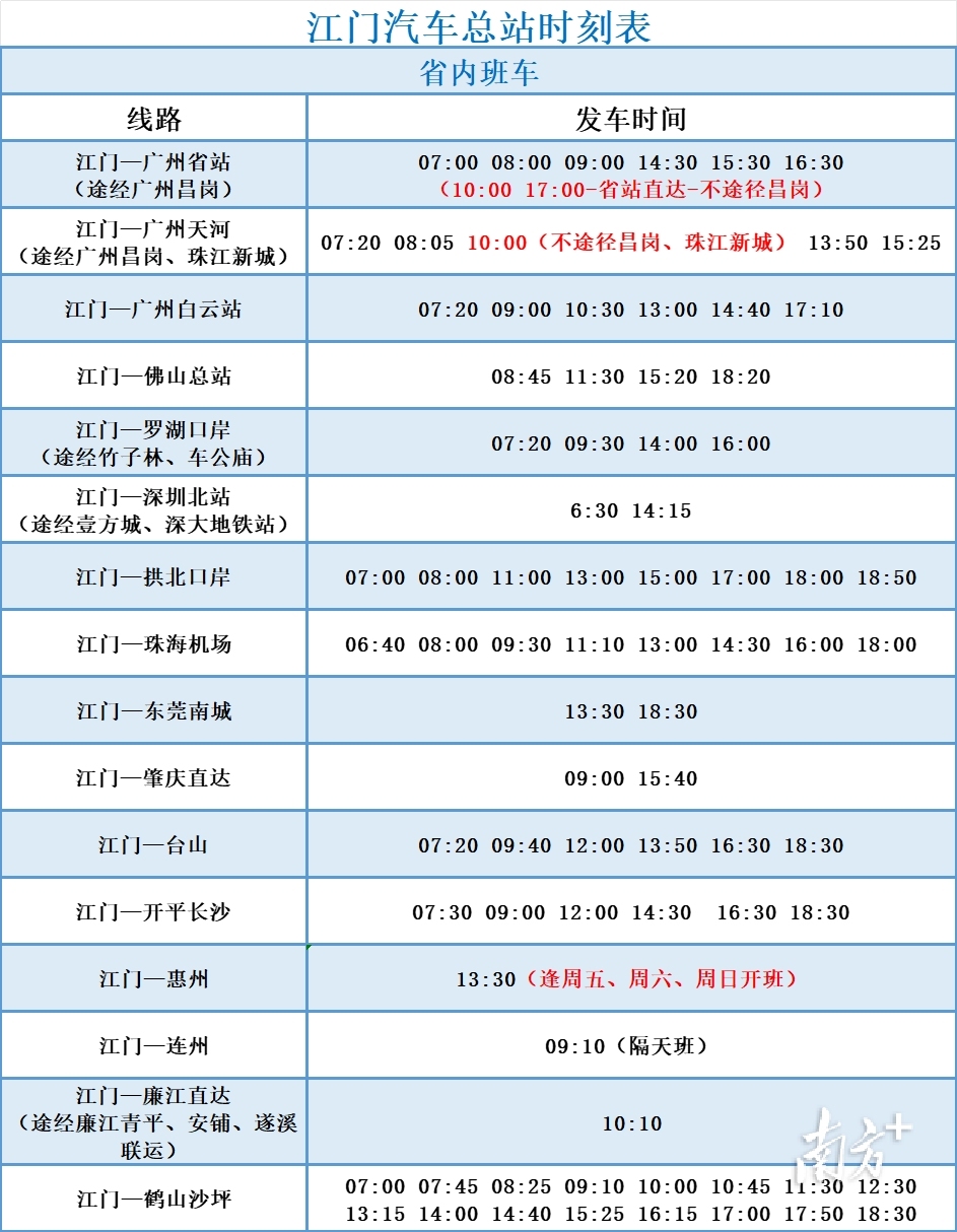 江门汽车总站时刻表。
