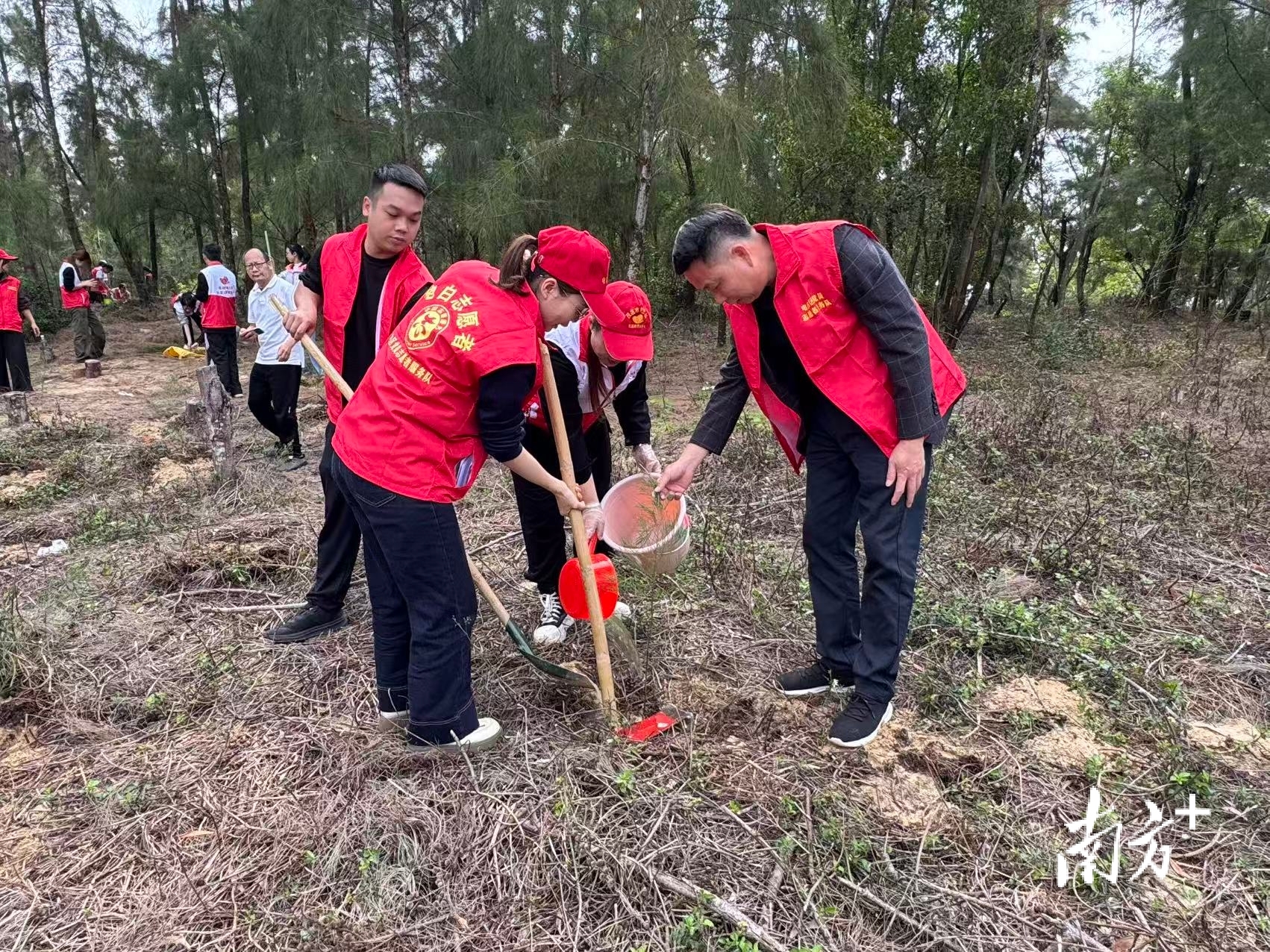 “我们开展‘守护绿美传奇项目’已经七年了。”电白区社区志愿者协会南海分会会长李雪强在现场一边指导志愿者种树,一边告诉笔者。作为海岸线的“绿色守护者”,协会七年来定期组织大家来种树、护林、巡查,累计种护林木超过2万株。