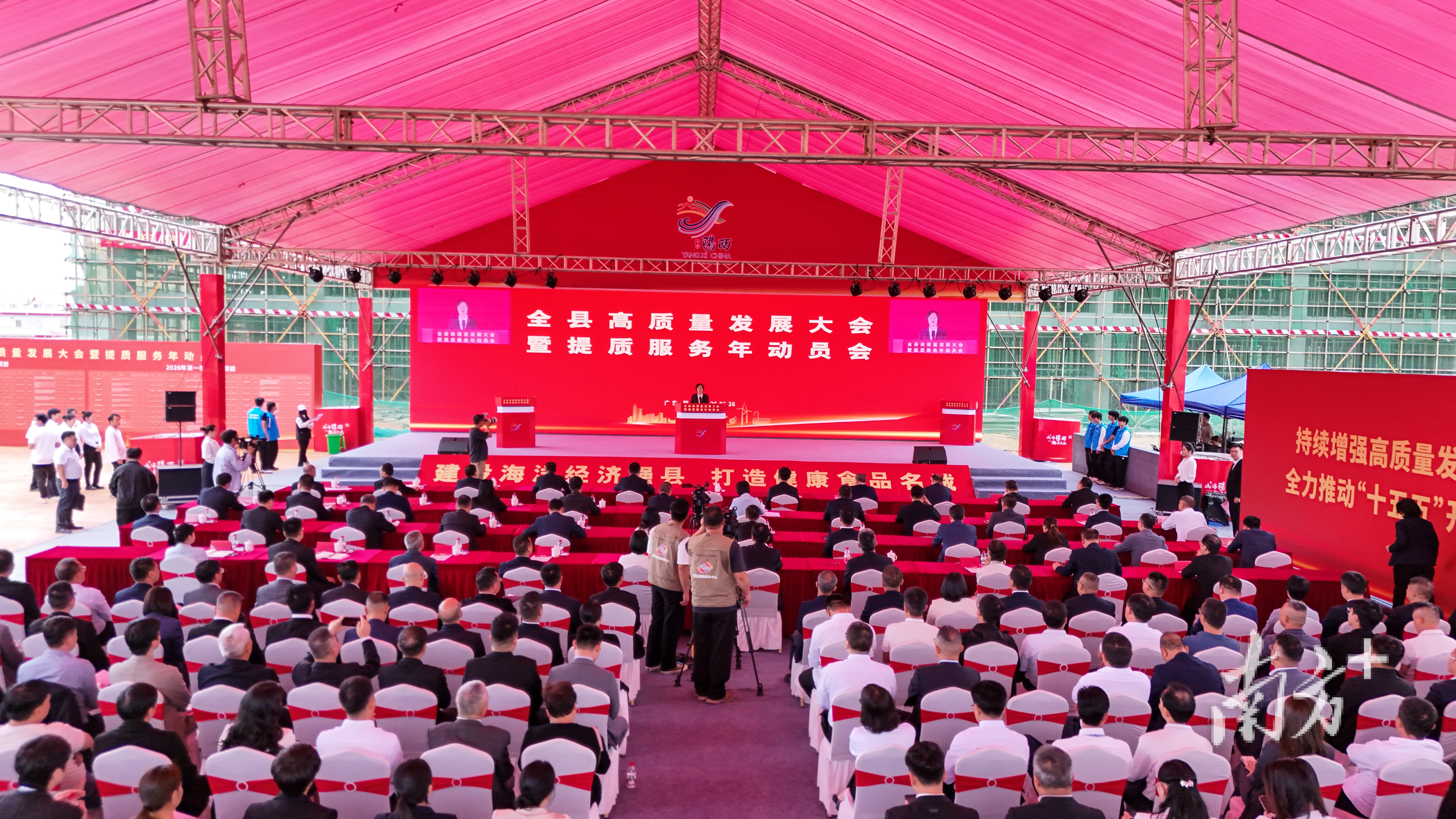 人勤地生宝,策马逐新高。2月26日上午,作为阳西“新春第一会”的全县高质量发展大会暨提质服务年动员会在阳江阳西产业园区四期建设现场召开。县委书记张秀洁出席会议并讲话,县委副书记、县长黄家新主持会议,县人大常委会主任叶船回,县政协主席张宜春出席会议。