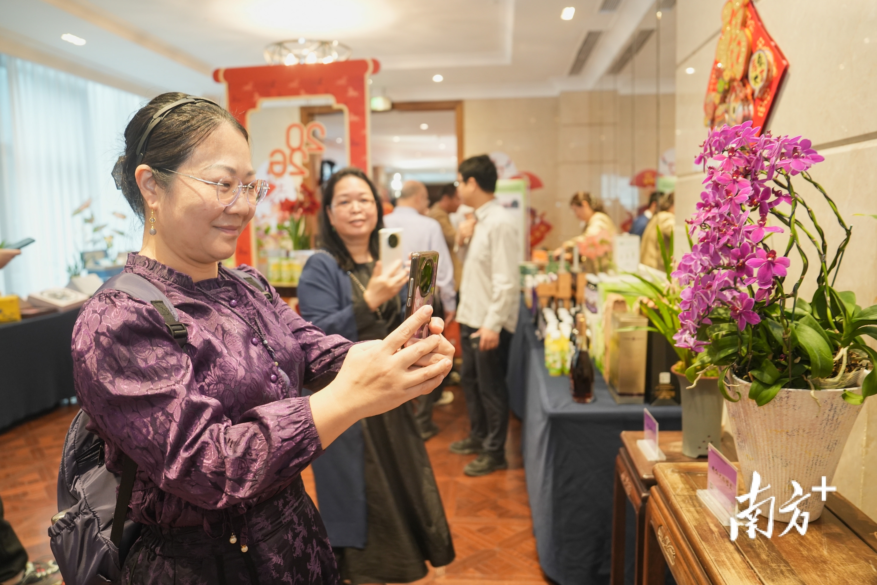 在品鉴体验区,广东省农科院研发的名特优农产品,如英红九号金毫茶、金毛豪等优质茶品,特色农科奶茶,桑果汁、桑果干、桑果酒等桑果系列产品,以及蜜饯凉果等广式休闲食品集中亮相,各类花卉共计近100种新产品同步在现场展示,嘉宾们近距离品尝、观赏体验,纷纷为岭南农科产品的“科创品质、独特风味与颜值担当”点赞。