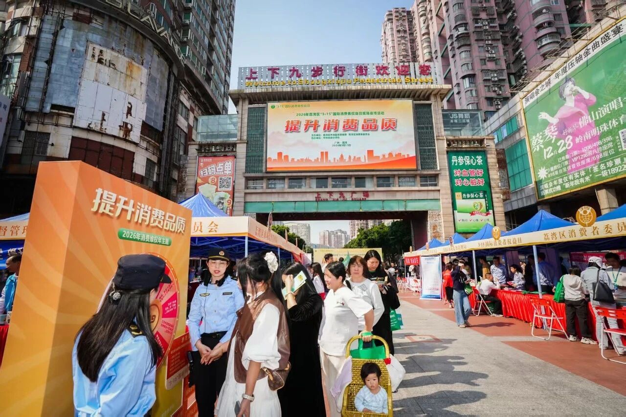 近日,由荔湾区市场监督管理局、区消费者委员会主办的2026年“3·15”国际消费者权益日现场宣传咨询活动,在华林街道上下九广场举行。本次活动以“提升消费品质”为主题,通过形式多样的宣传服务,向广大市民普及消费维权知识,营造安全放心的消费环境。