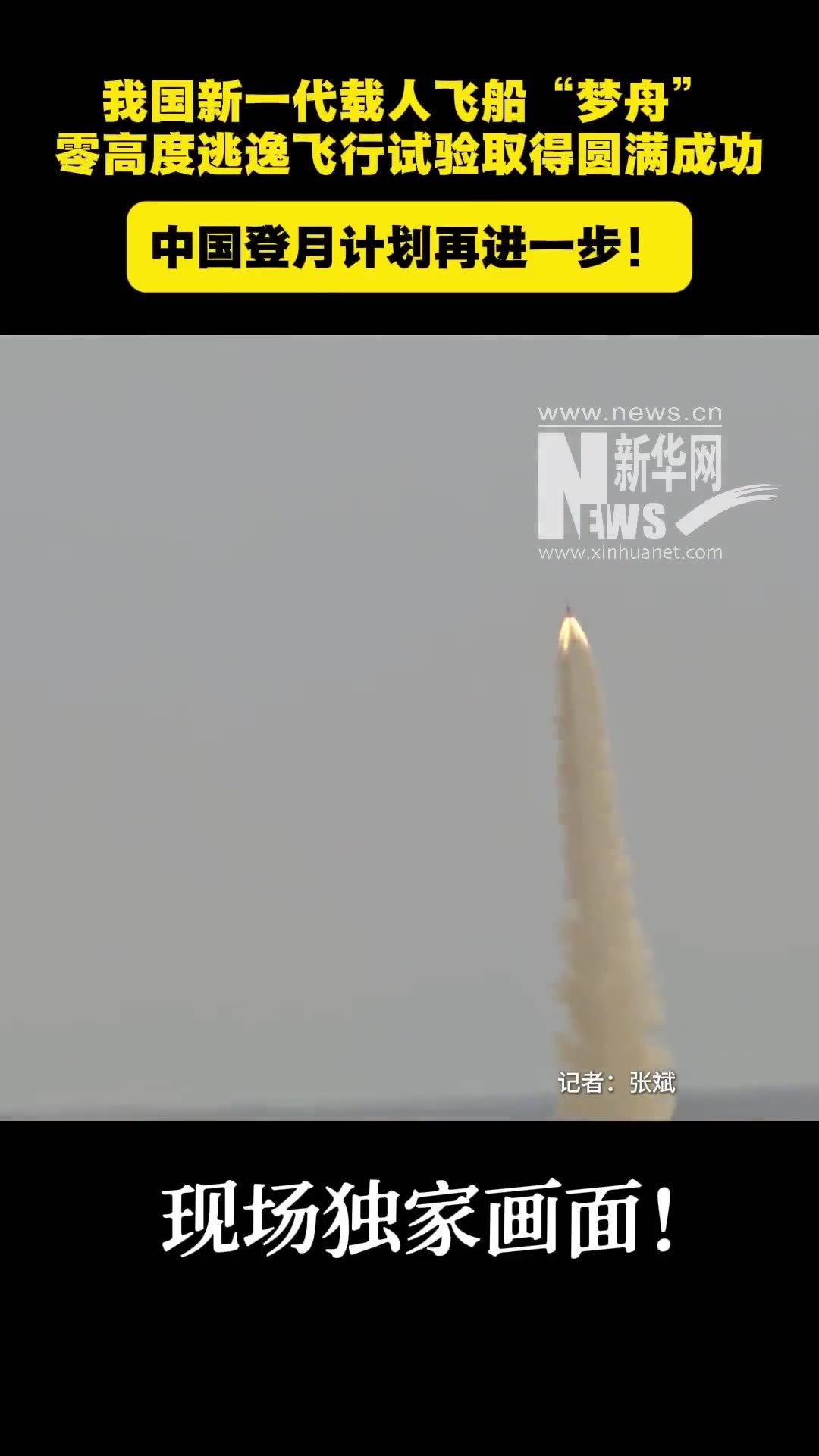 我国新一代载人飞船“梦舟”零高度逃逸飞行试验取得圆满成功