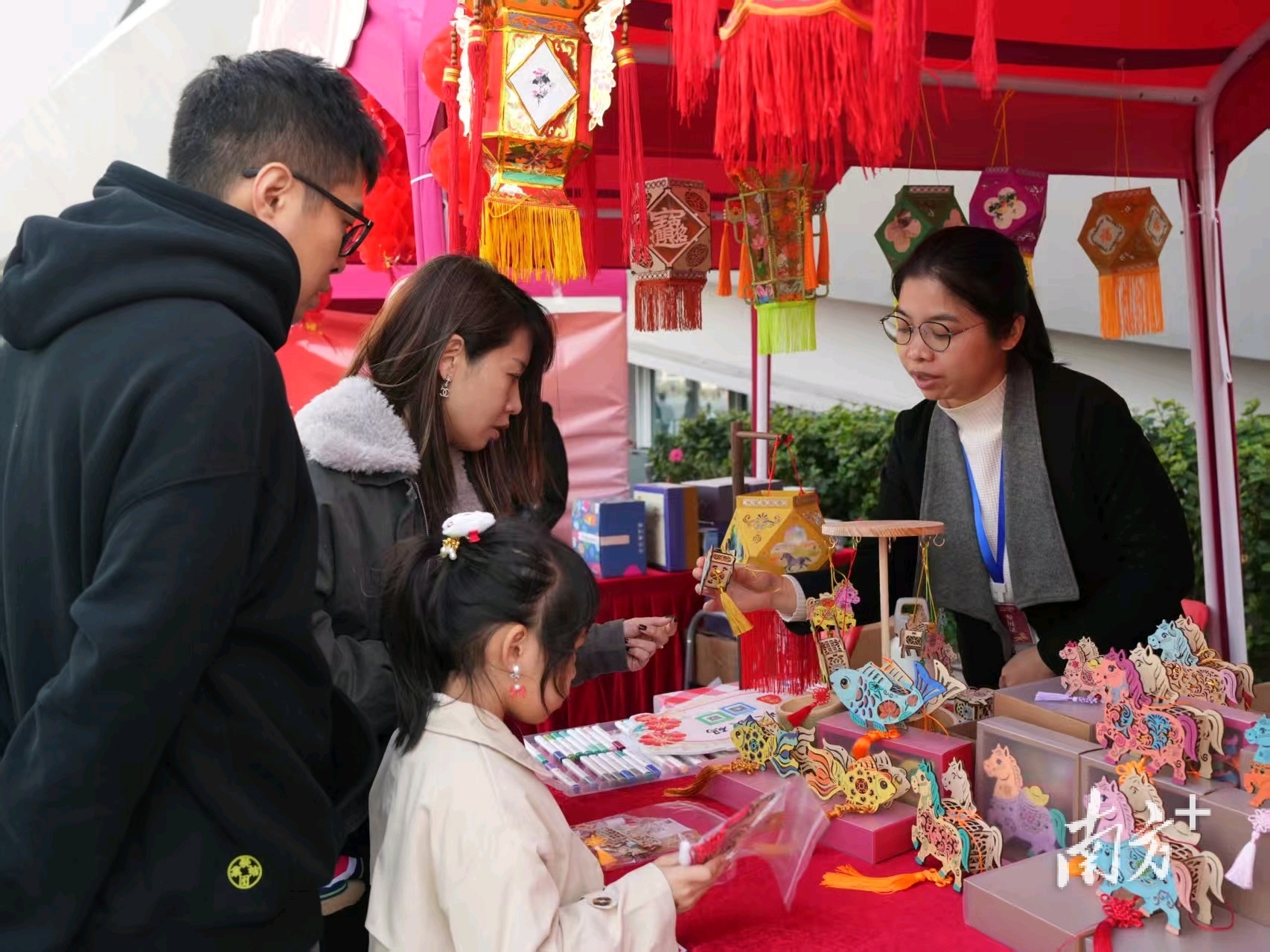 活动现场处处洋溢着欢乐喜庆祥和的春节氛围。来自广东21个地市的50余个非遗摊位有序排布,宛如一幅流动的岭南风情画卷徐徐展开,尽显烟火温情与年味暖意。