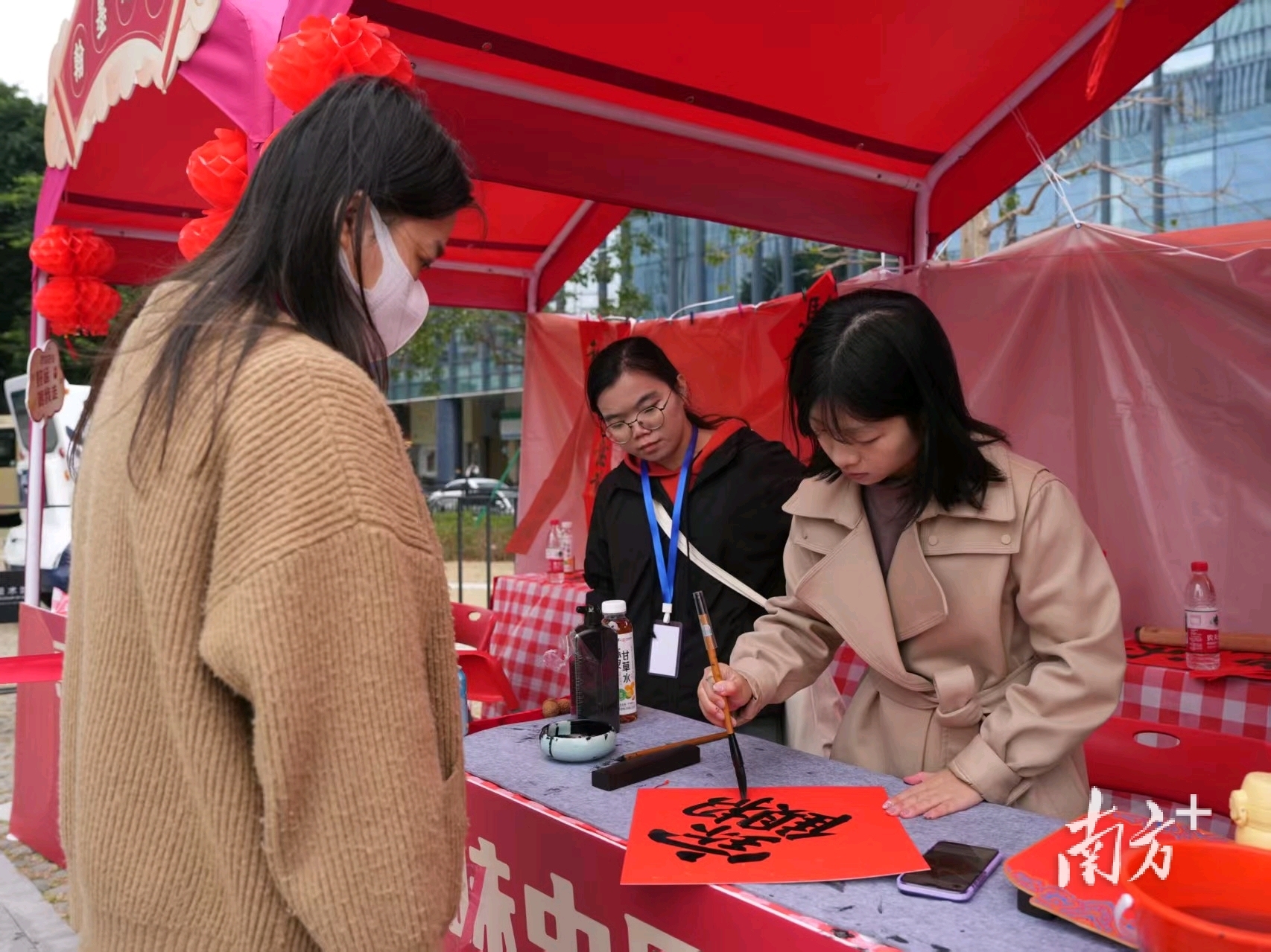 “年货荟萃”工艺区集中呈现香云纱、流沙珍珠、佛山木版年画等精美手作,非遗传承人现场献艺,向市民细致解读传统工艺的匠心巧思;“翰墨迎春”送福区最是热闹,一副副饱含新春祝福的春联、一个个寓意吉祥的“福”字被免费赠予市民,笔墨间传递着浓浓的年味与温情。