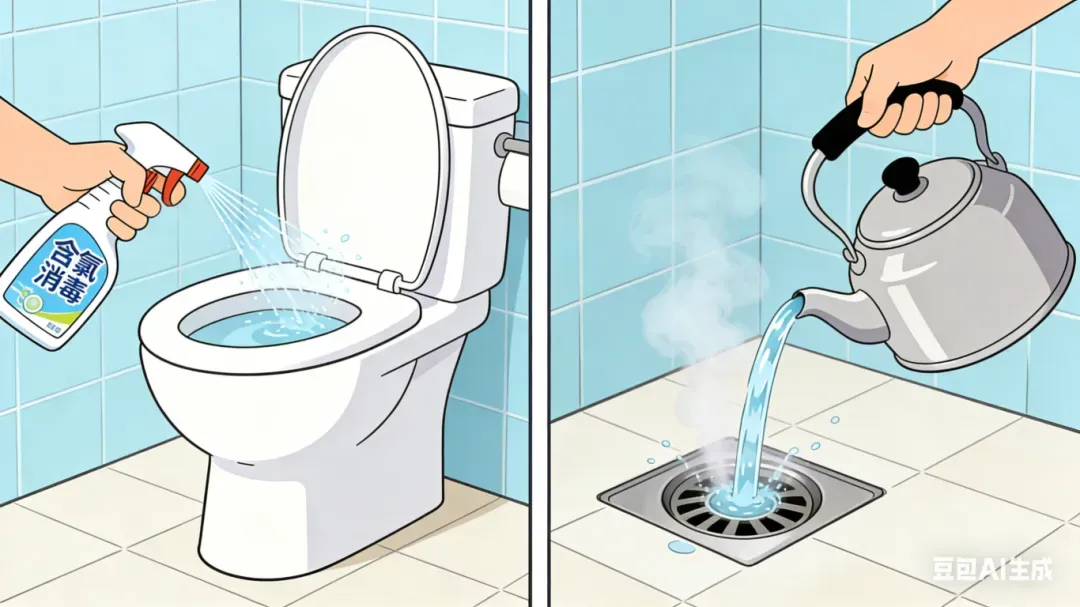 ♨️地漏:倒入半杯开水+半勺小苏打或稀释的84消毒液,杀灭虫卵和细菌。