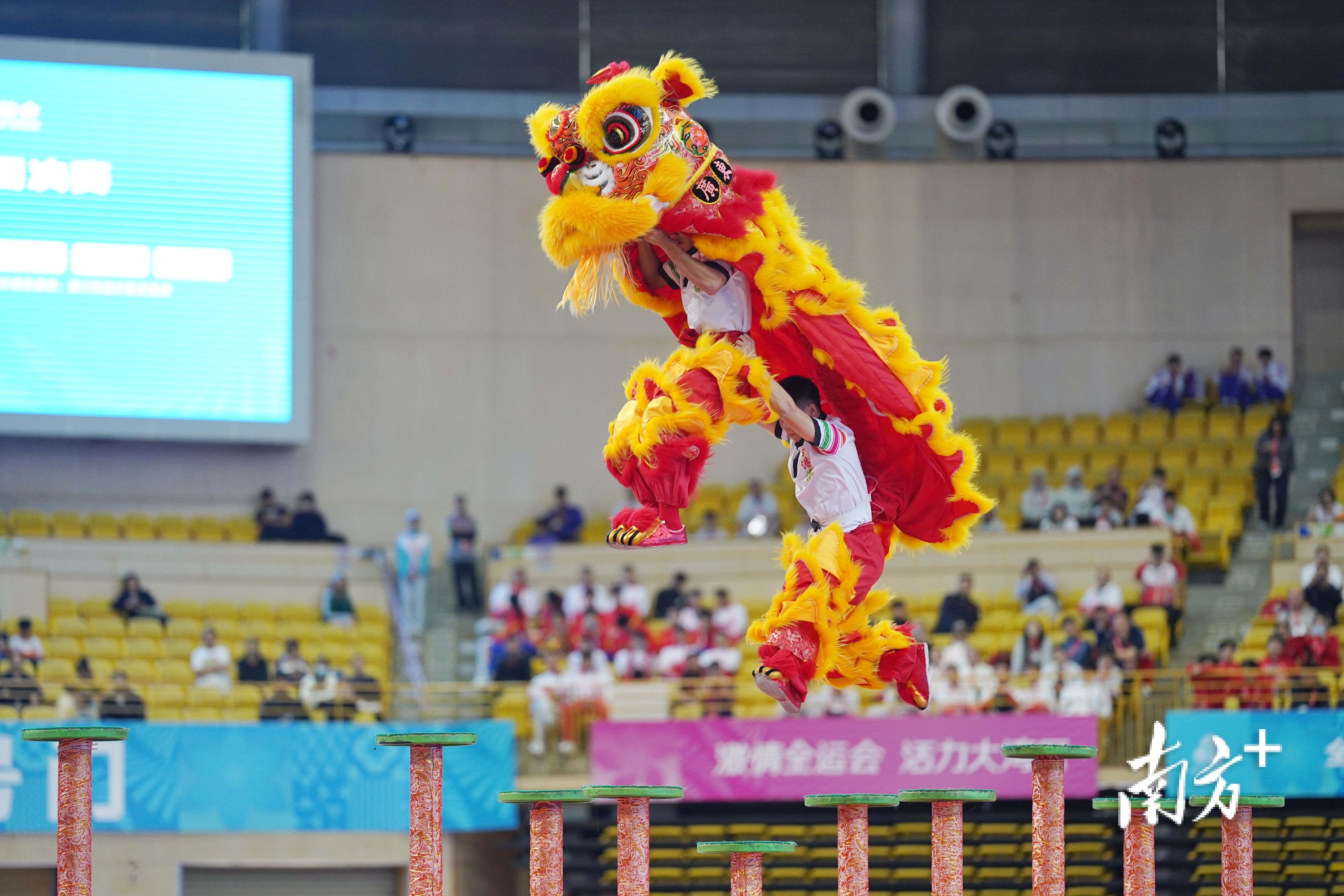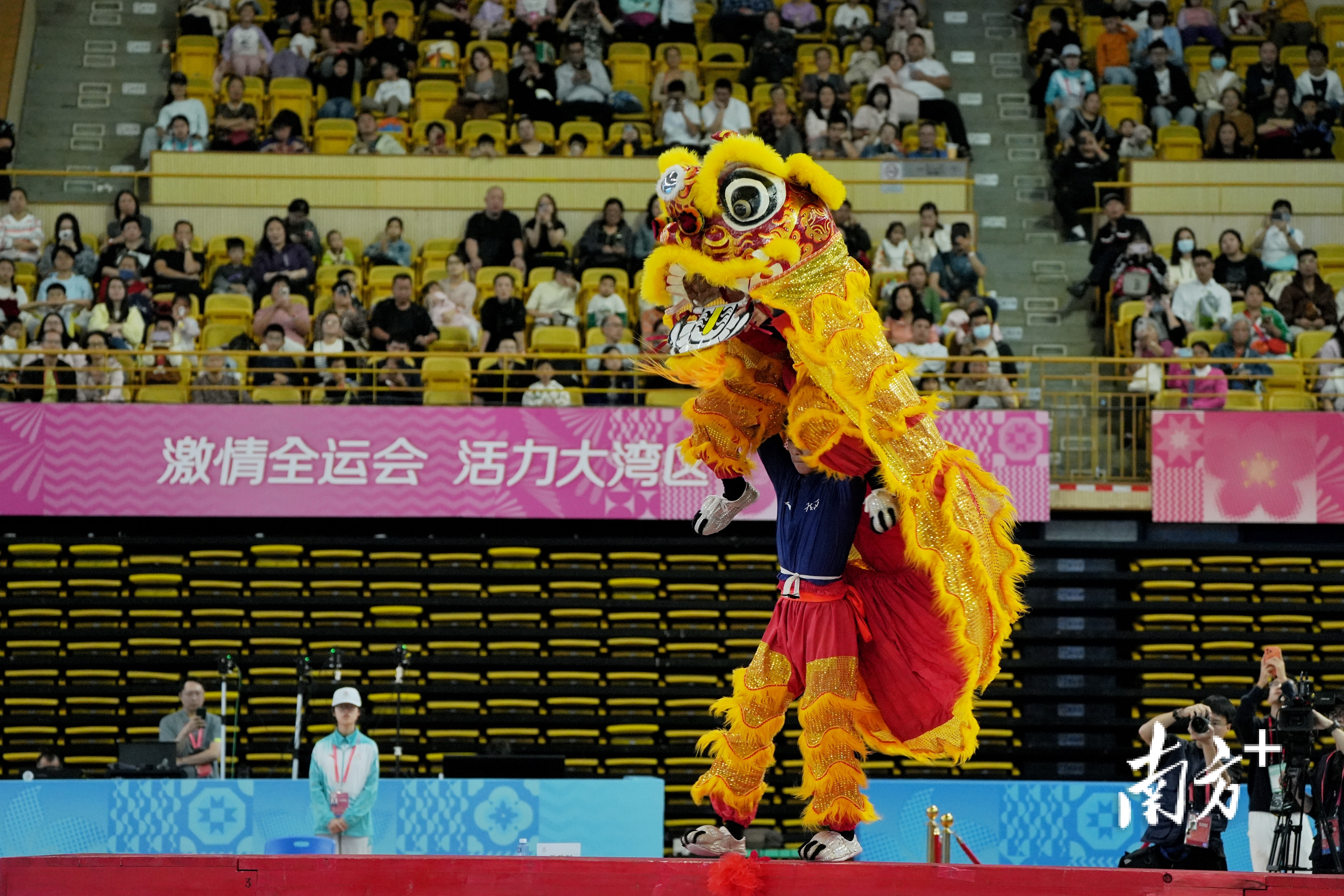 粤港澳联队在南狮自选子项目的精彩表现。 南方+ 戴嘉信 拍摄