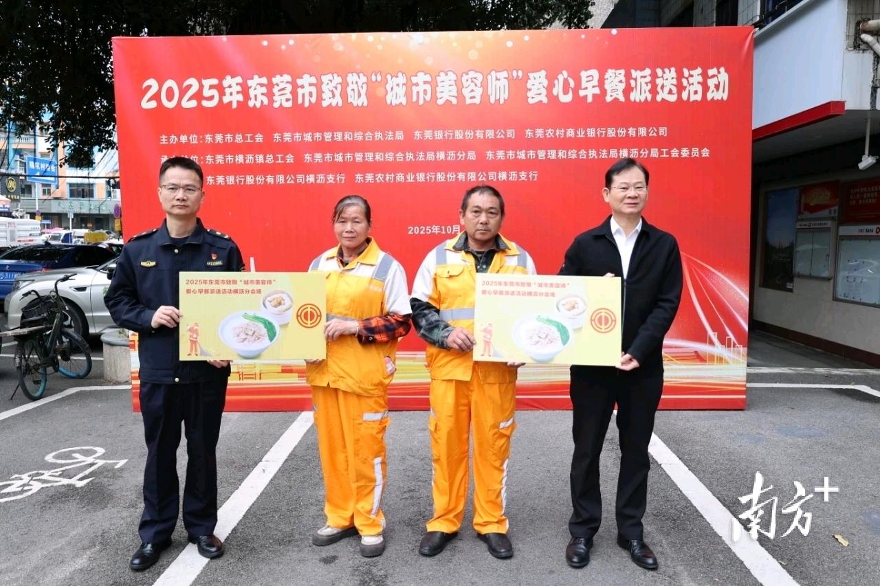 10月23日,2025年东莞市致敬“城市美容师”爱心早餐派送活动横沥分会场在工会爱心驿站·横沥镇隔坑村站举行,进一步传递对环卫工人的关心与敬意。