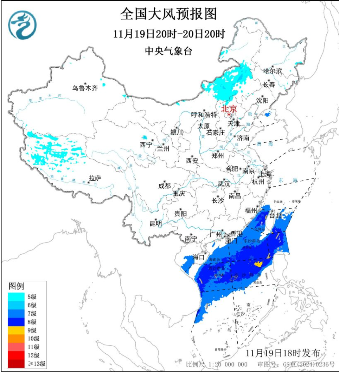 同时要注意,未来几日海上仍有大风。20-22日,粤西海面东北风6级、阵风7级,中东部海面东北风6-7级、阵风8级;台湾海峡、南海中北部海面东北风6-8级、阵风9级。