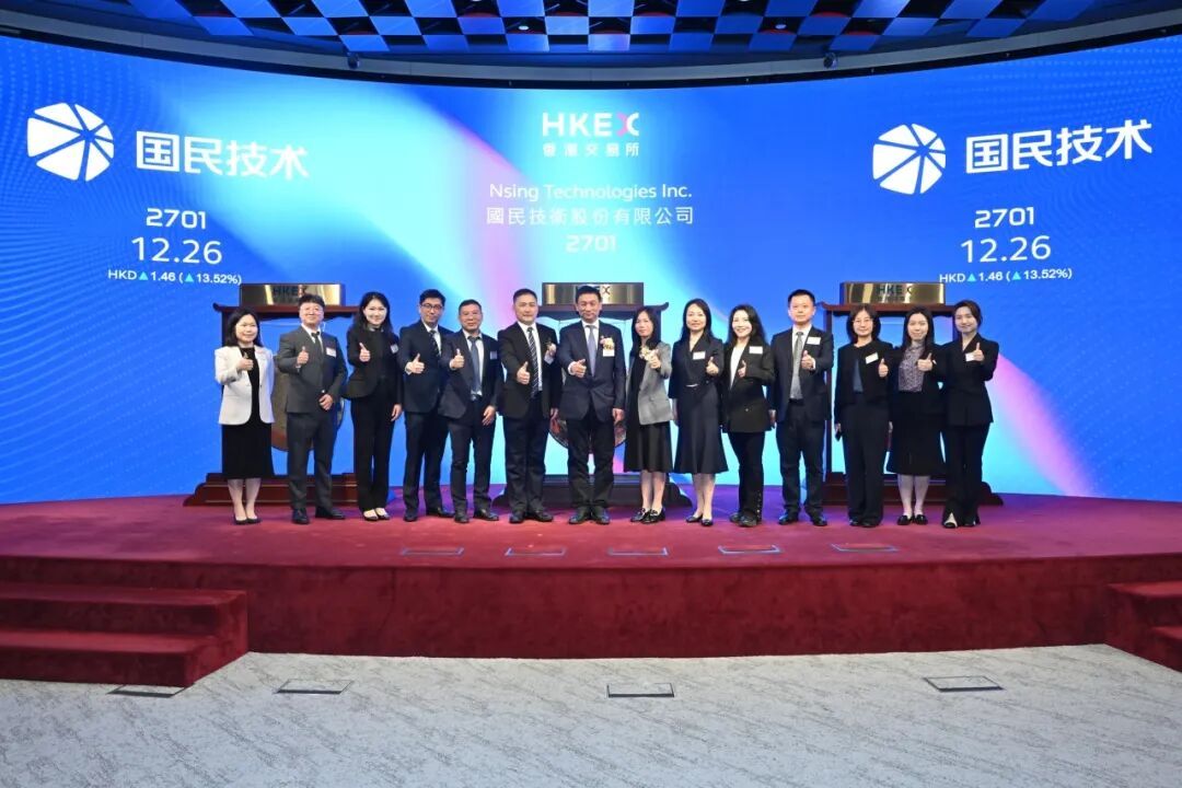国民技术(02701.HK)同日在港交所挂牌上市,开盘涨41.39%,总市值约100亿港元,此次成功登陆国际资本市场,标志着这家深耕半导体领域二十余年的龙头企业,正式迈入“A+H”双资本平台协同发展的全新阶段,为企业高质量发展注入强劲动力。