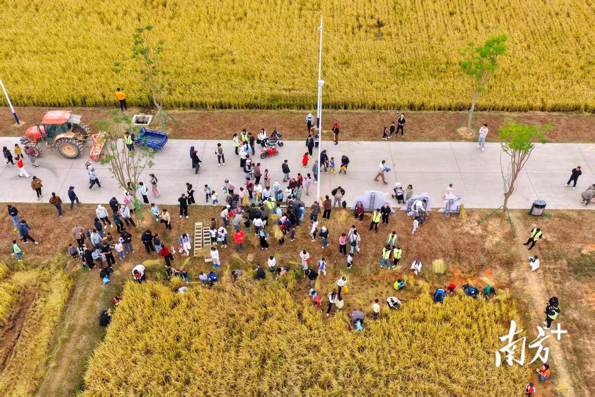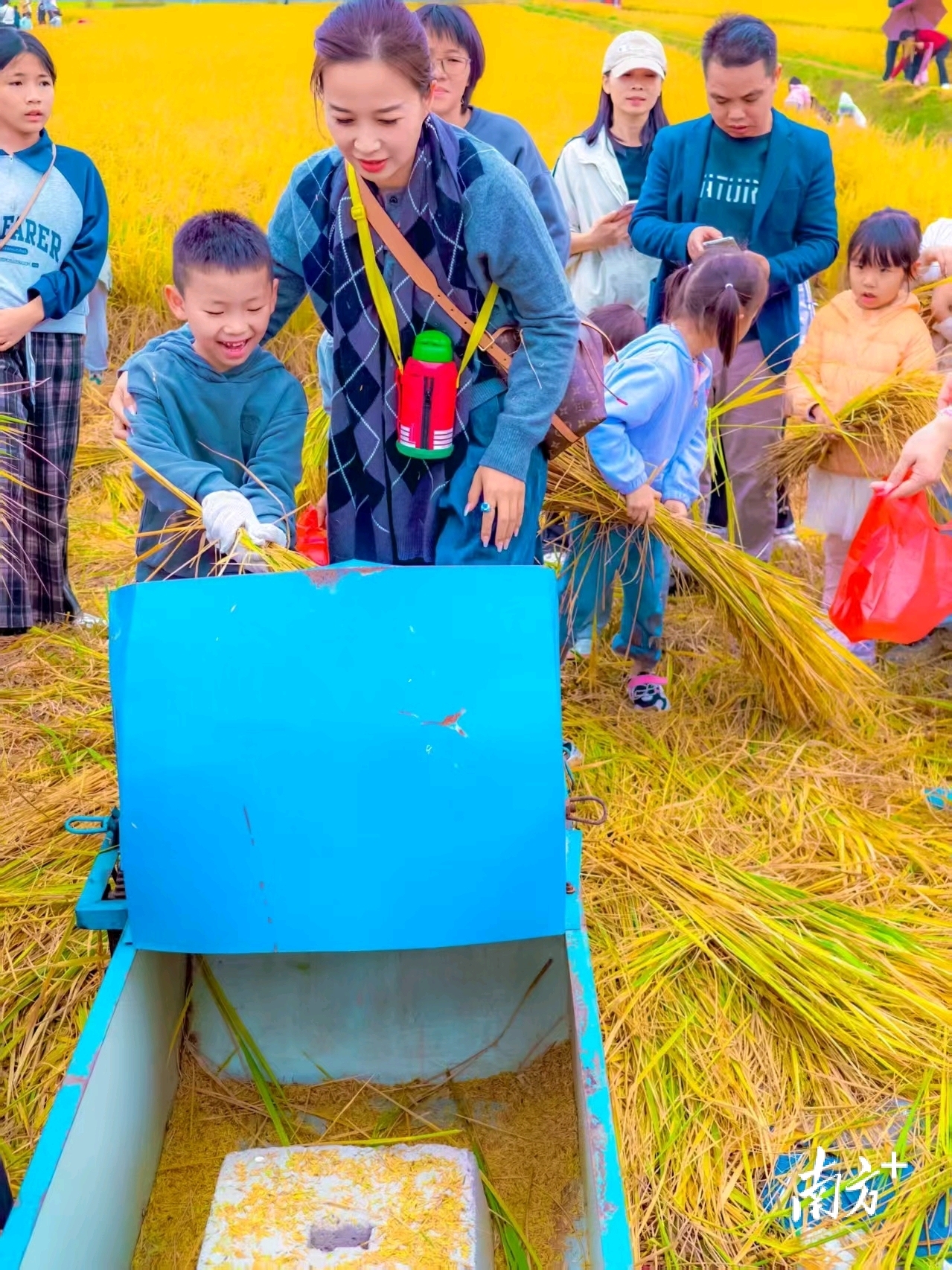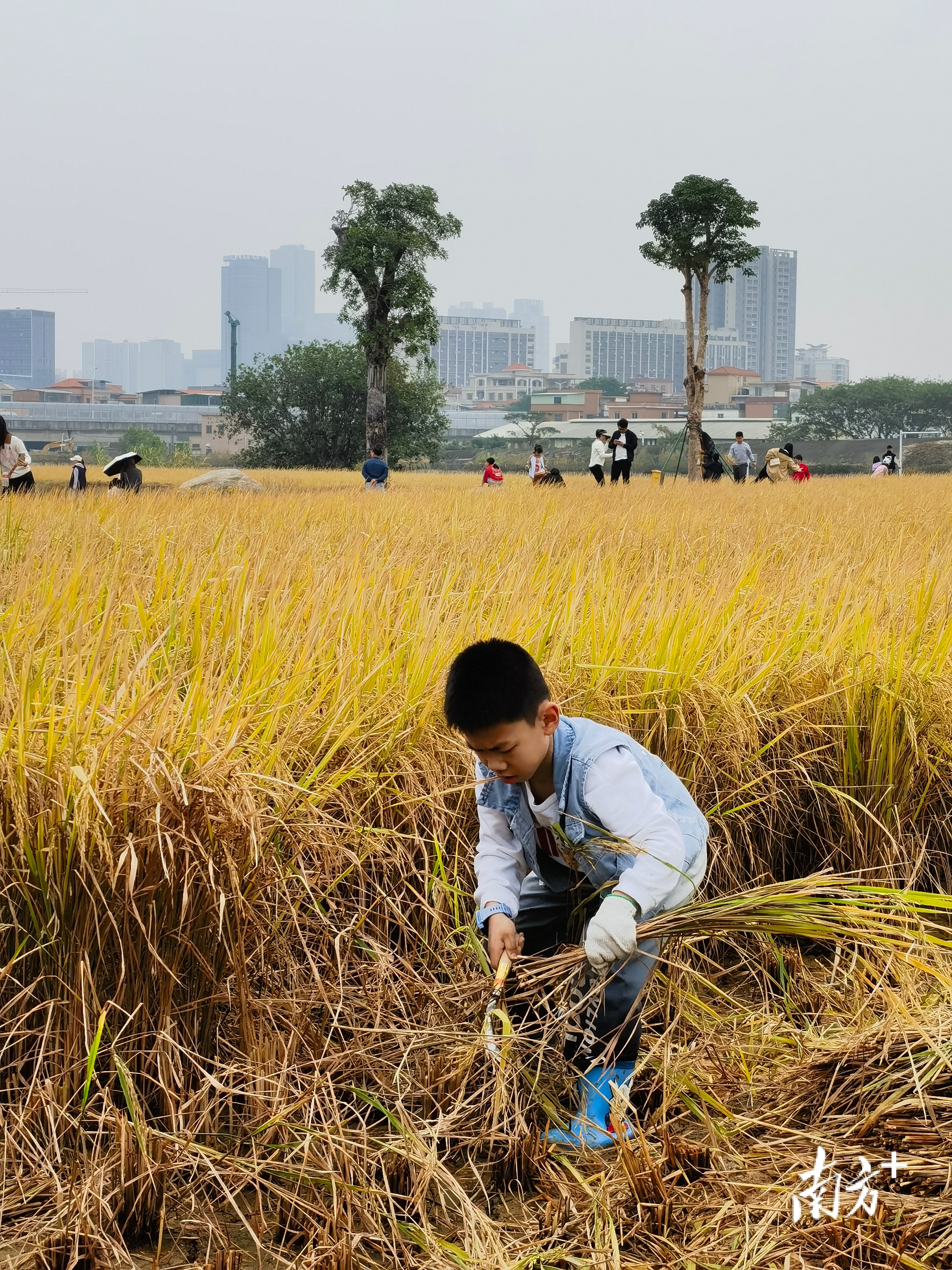“没想到能在家门口体验割禾,我专门带小孩过来,真的太好了。”李先生是土生土长的南城白马社区居民,他直言小时候还见过附近的农田,但随着城市化发展,工厂高楼拨地而起,农田越来少。“没想到今年南城搞了这么个地方,不仅能看能玩,还能体验农耕,让孩子们切身理解什么是粒粒皆辛苦。”