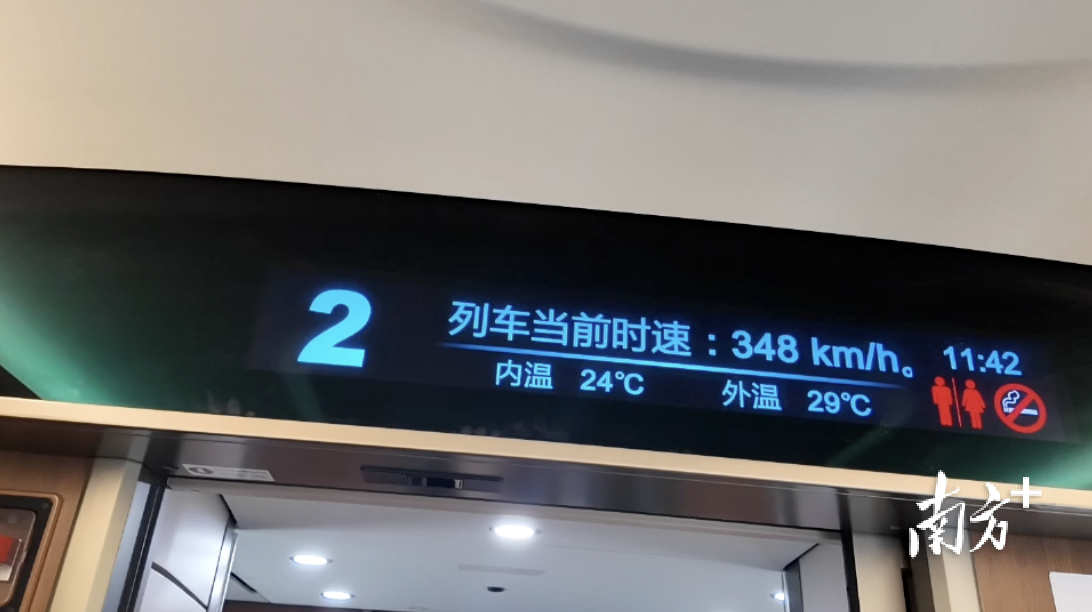 上午10时,G5217次复兴号列车从广州白云站始发,11时许到达茂名南站。随后记者跟随试乘人员进站乘车,窗外田园、村庄飞速掠过,车内电子屏显示实时车速稳步达到350公里/小时。约25分钟,列车准时驶进湛江北站。