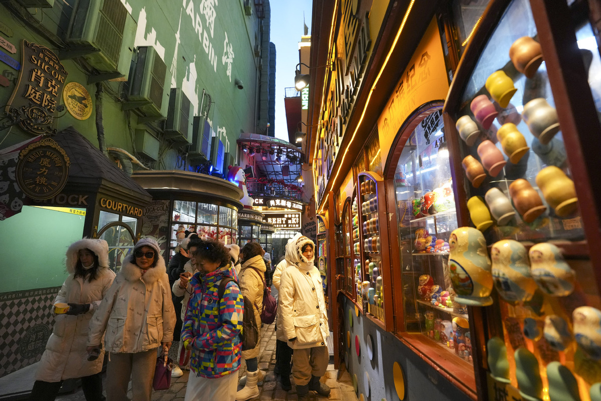 Tourists visit the Central Street in Harbin, capital of Northeast China's Heilongjiang province, Dec 16, 2025. [Photo/Xinhua]