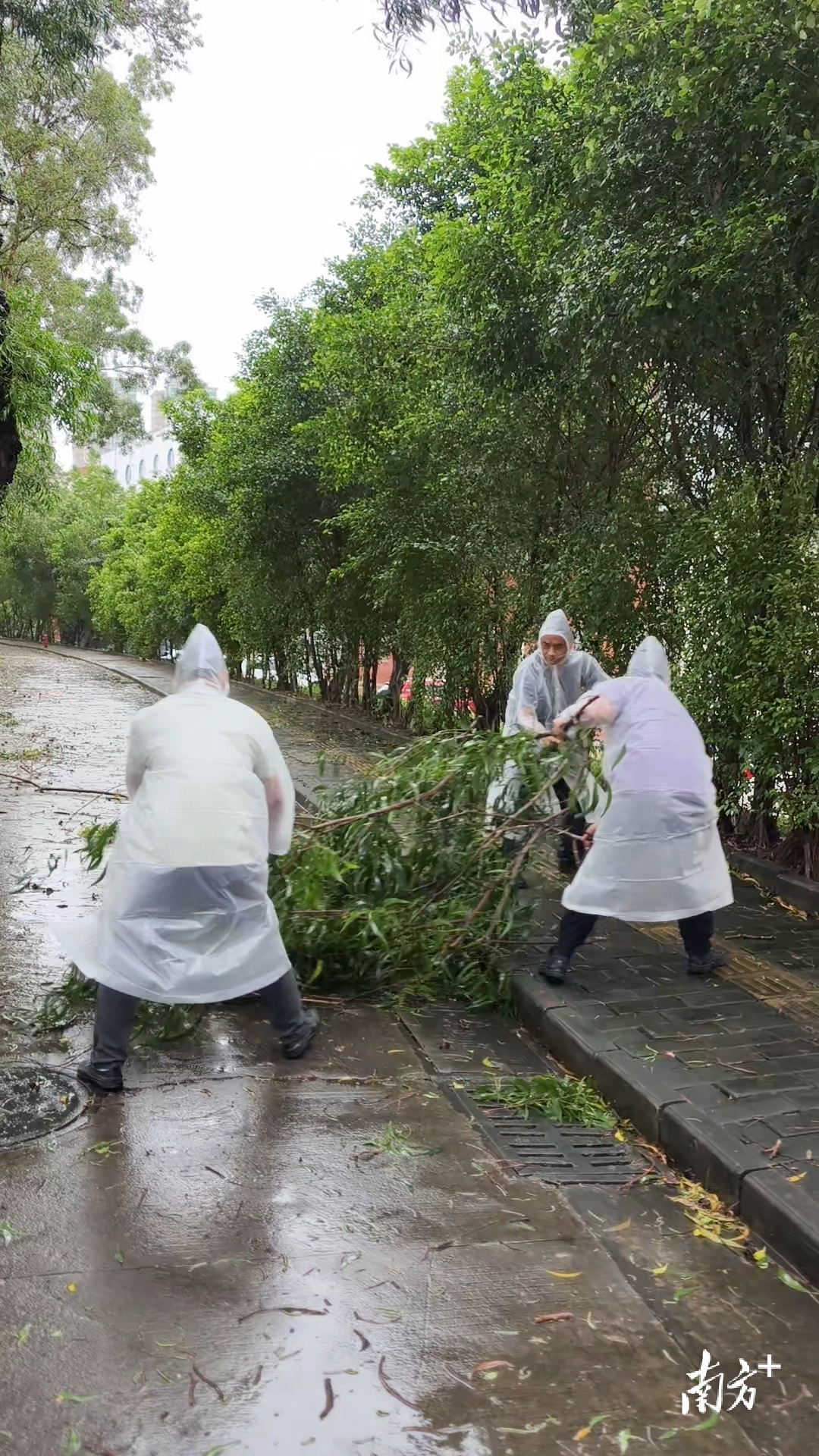 贺涛组织值班人员冒着风雨到现场清理枝干,排除隐患。 通讯员 供图