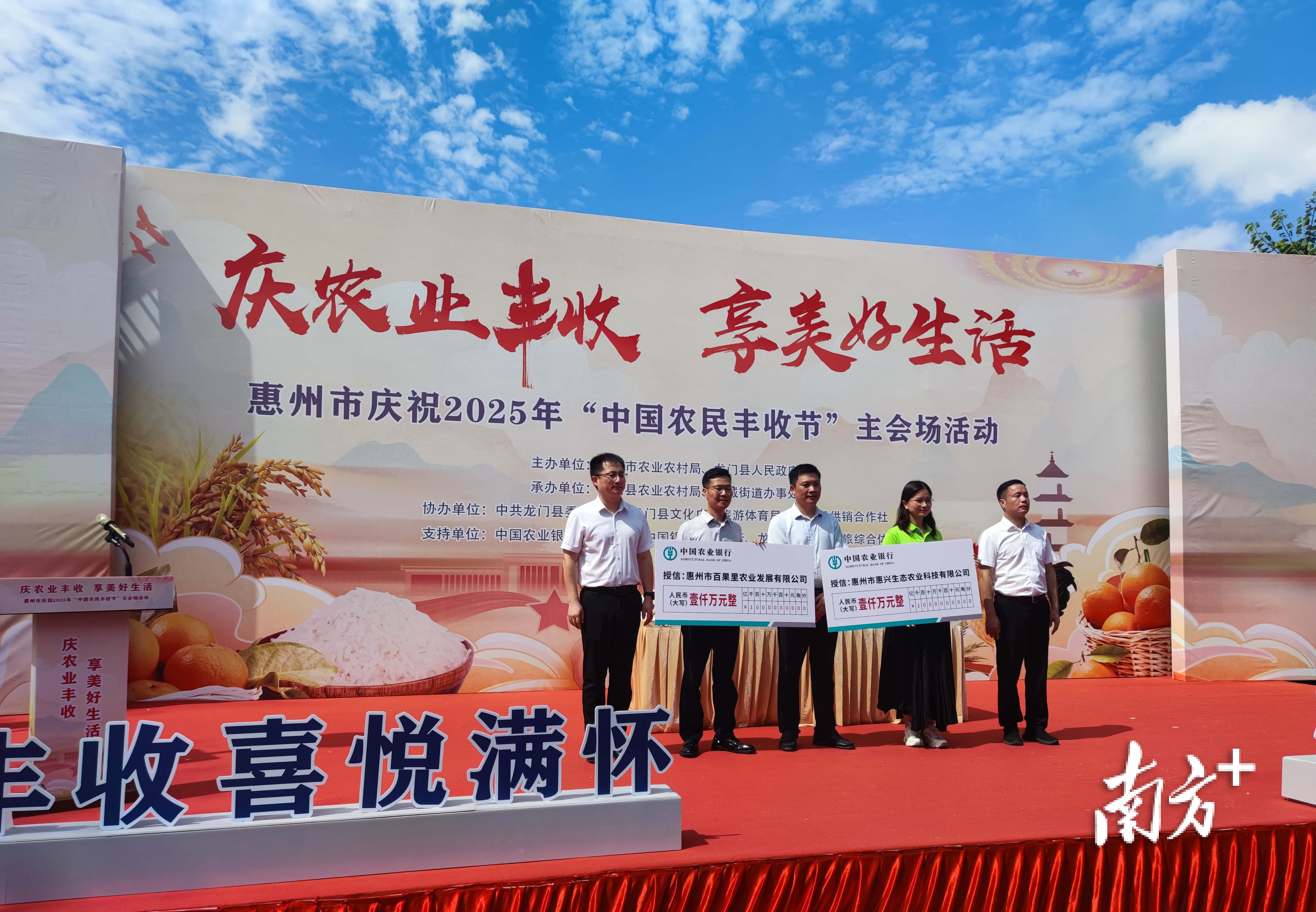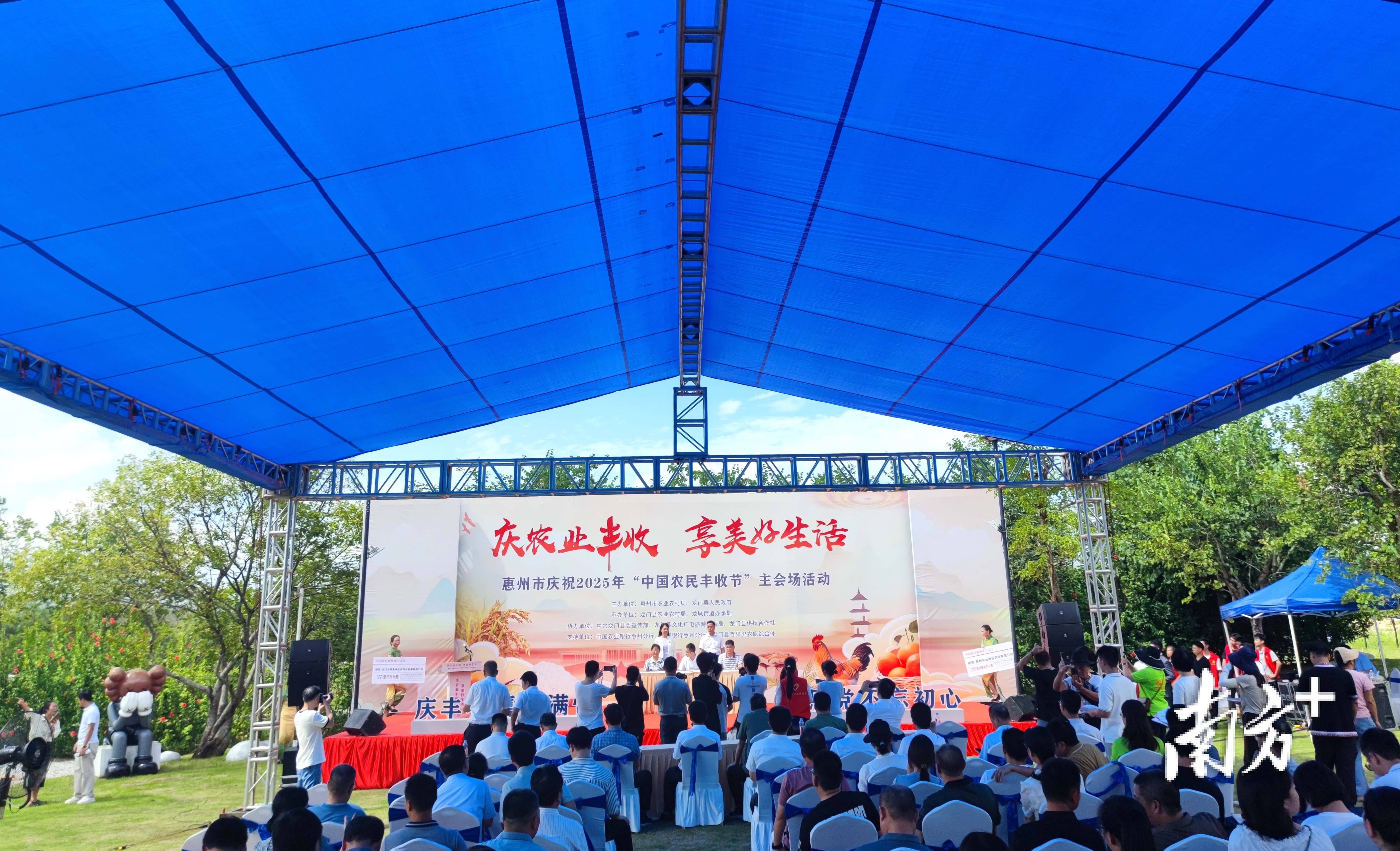 9月27日,惠州市庆祝2025年“中国农民丰收节”主会场活动在龙门县龙城街道城西村百果里农旅综合体举行。