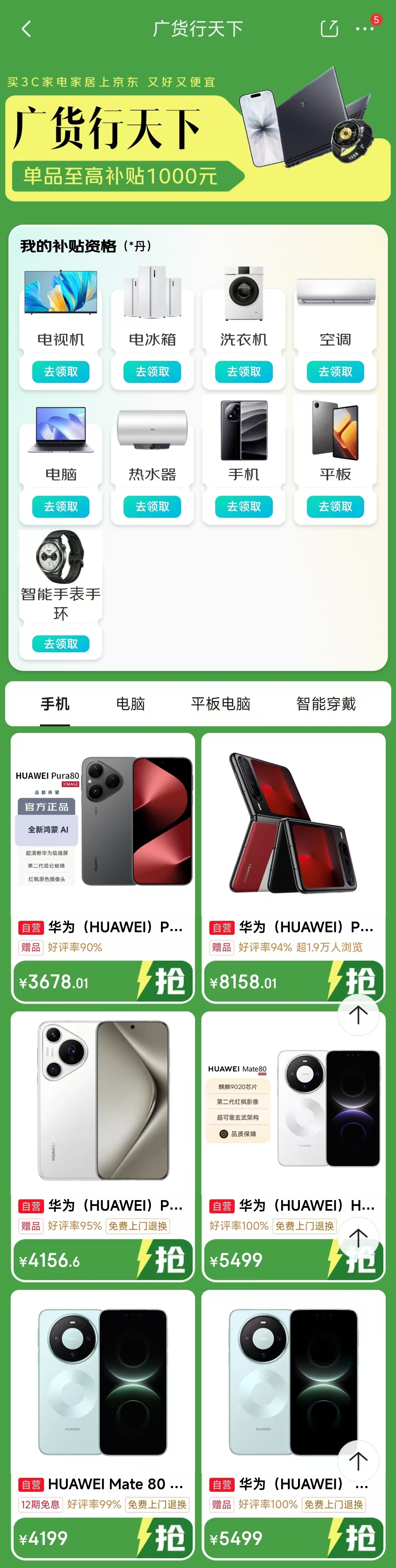 在京东方面,据南方+记者搜索发现,“广货行天下”活动专区已经进行测试,即将正式上线。南方+记者在京东“广货行天下”活动专区看到,平台为各式各样的“广货”提供了单品至高1000元的补贴。覆盖了手机、电脑、平板电脑、智能穿戴等多个品类,为消费者提供了丰富的“广货”选择。