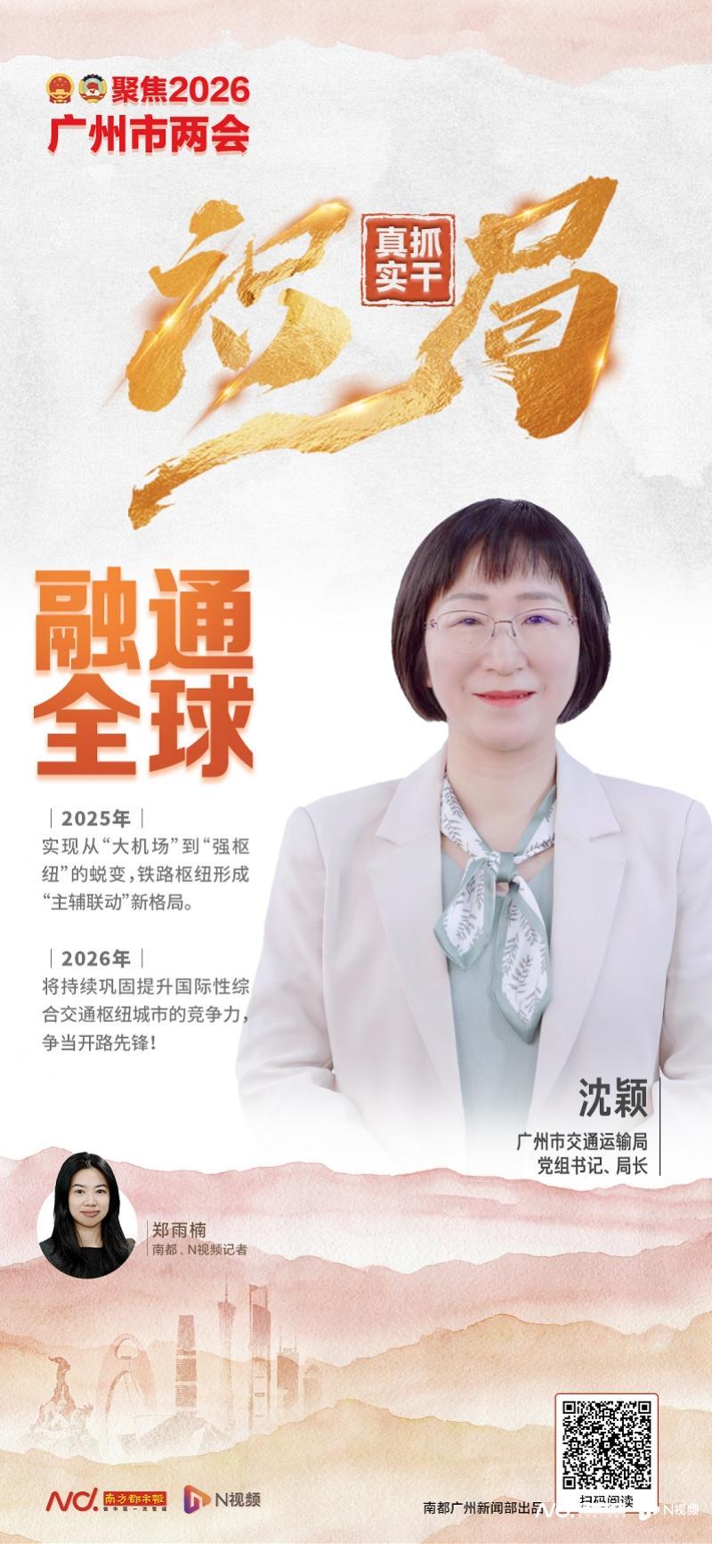中国共产党广州市第十二届委员会第十一次全体会议暨市委经济工作会议上提出,做强国际性综合交通枢纽,做深做实“枢纽+”文章,为广州交通下一阶段的工作指明方向。在广州市两会期间,广州市交通运输局党组书记、局长沈颖接受南都专访,回望2025,展望2026。