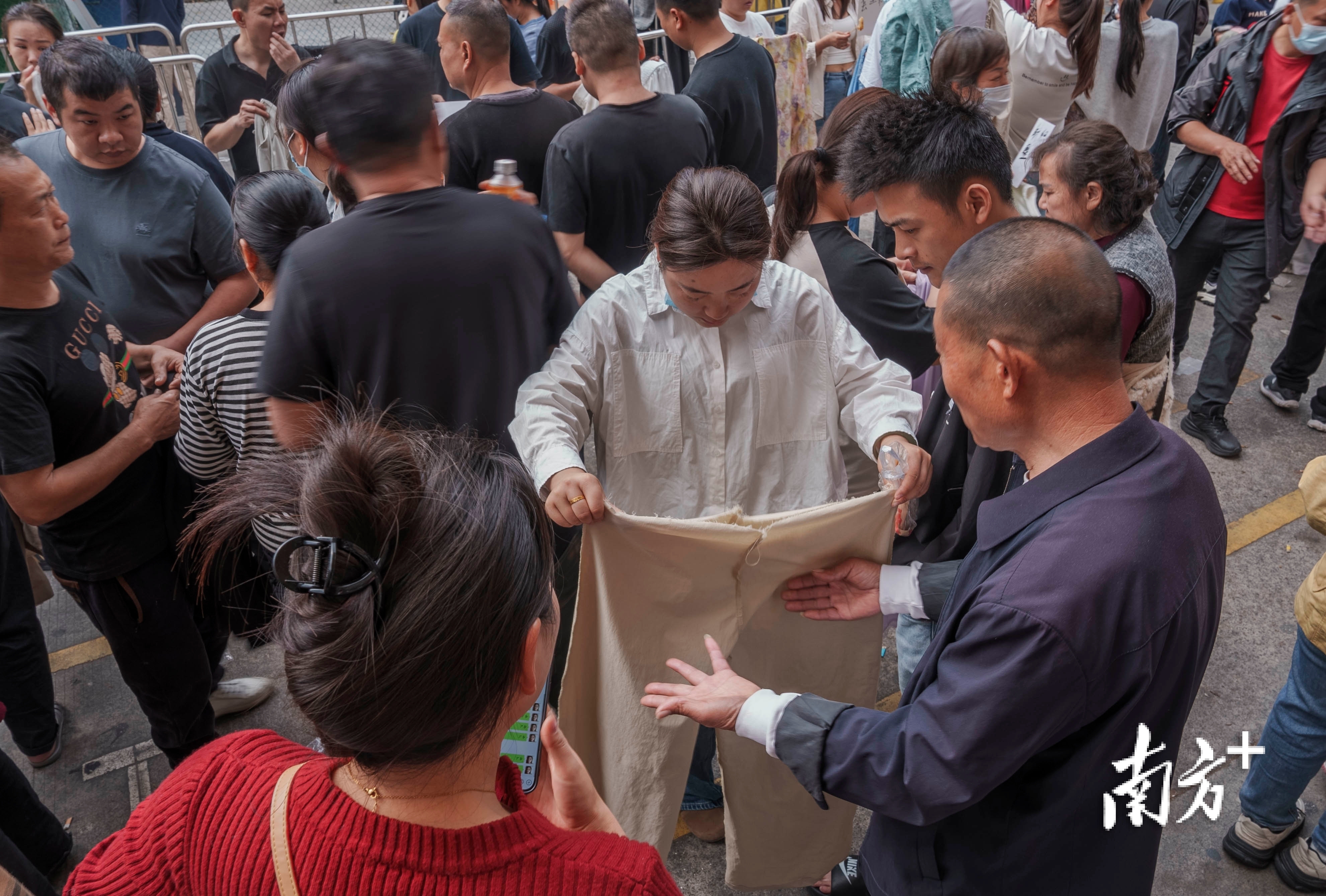 清晨,广州海珠区康鹭新招工广场人声鼎沸,数百名制衣厂老板手持样衣列队排开,此起彼伏的吆喝声中,满是抢人的急切。工人们则从容穿梭其间,驻足询价、翻看样衣,不合心意便转身离开,一派“老板找工人”的热闹景象。