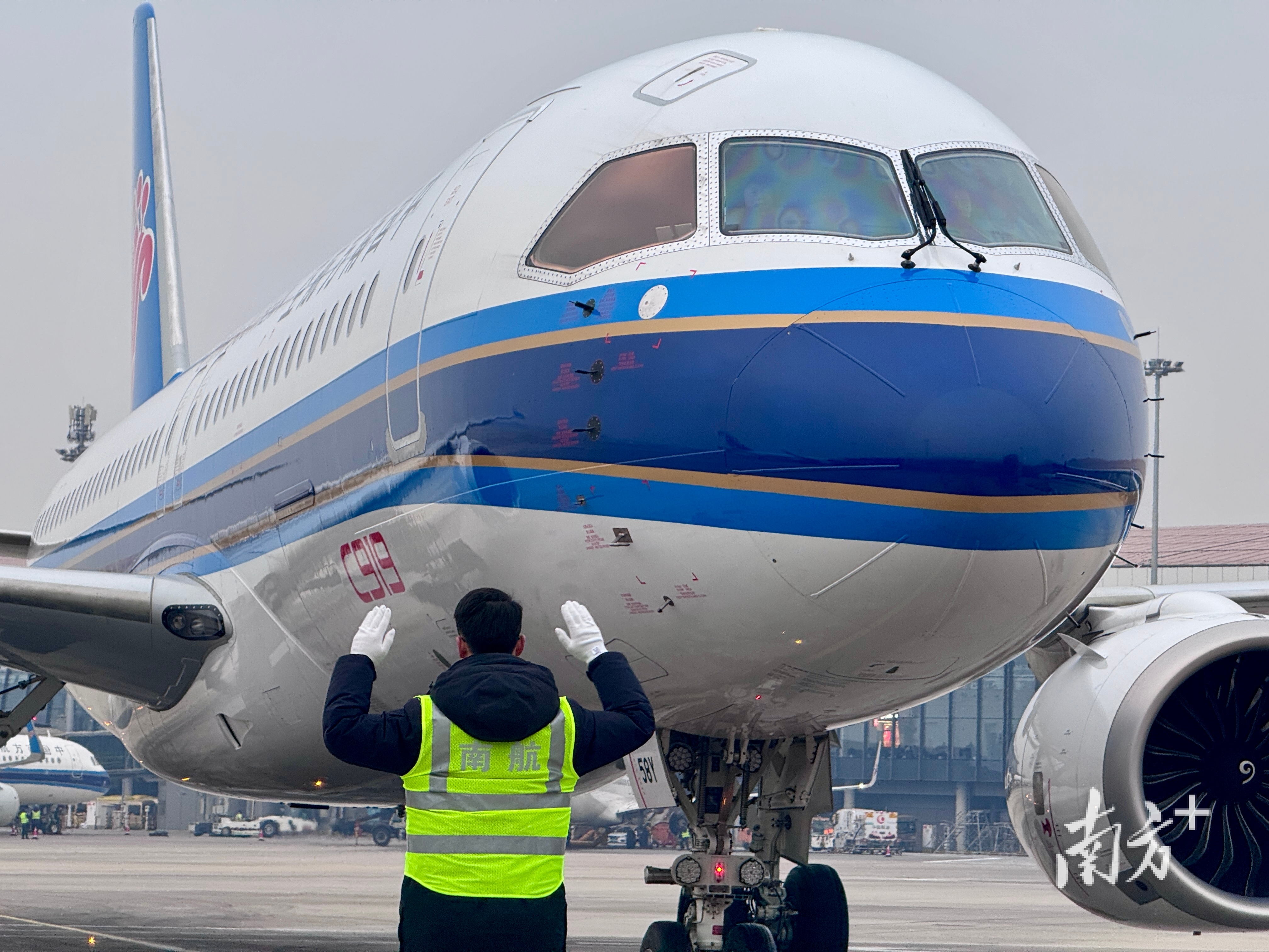 今年春运,南航使用国产机型执行航班约1.275万小时,比2025年春运提高51.9%。其中,南航C919国产大飞机首次在春运期间实现广州、长沙双基地运行,第9架和第10架C919也在今年春运期间相继入列并投入运营,整个春运期间南航C919机型执行航班超1300班次,承运旅客超18万人次。