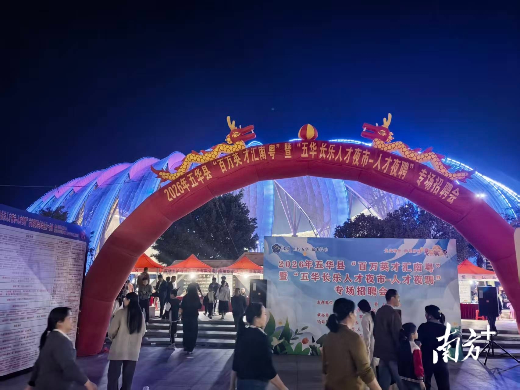 3月14日,恰逢2026怡宝中甲联赛梅州客家犀旺队主场首战之日,五华县2026年“长乐人才夜市”系列活动在县奥体中心启幕。此次活动是贯彻落实“百万英才汇南粤”行动计划、“才聚梅州大行动”的具体实践,以“星光职汇·才聚长乐”为主题,同步开启人才夜聘、人才夜校、人才夜擂三大板块,将中甲赛事的超高人气转化为人才引育的强劲动力,为五华县高质量发展奏响人才引育“第一曲”。