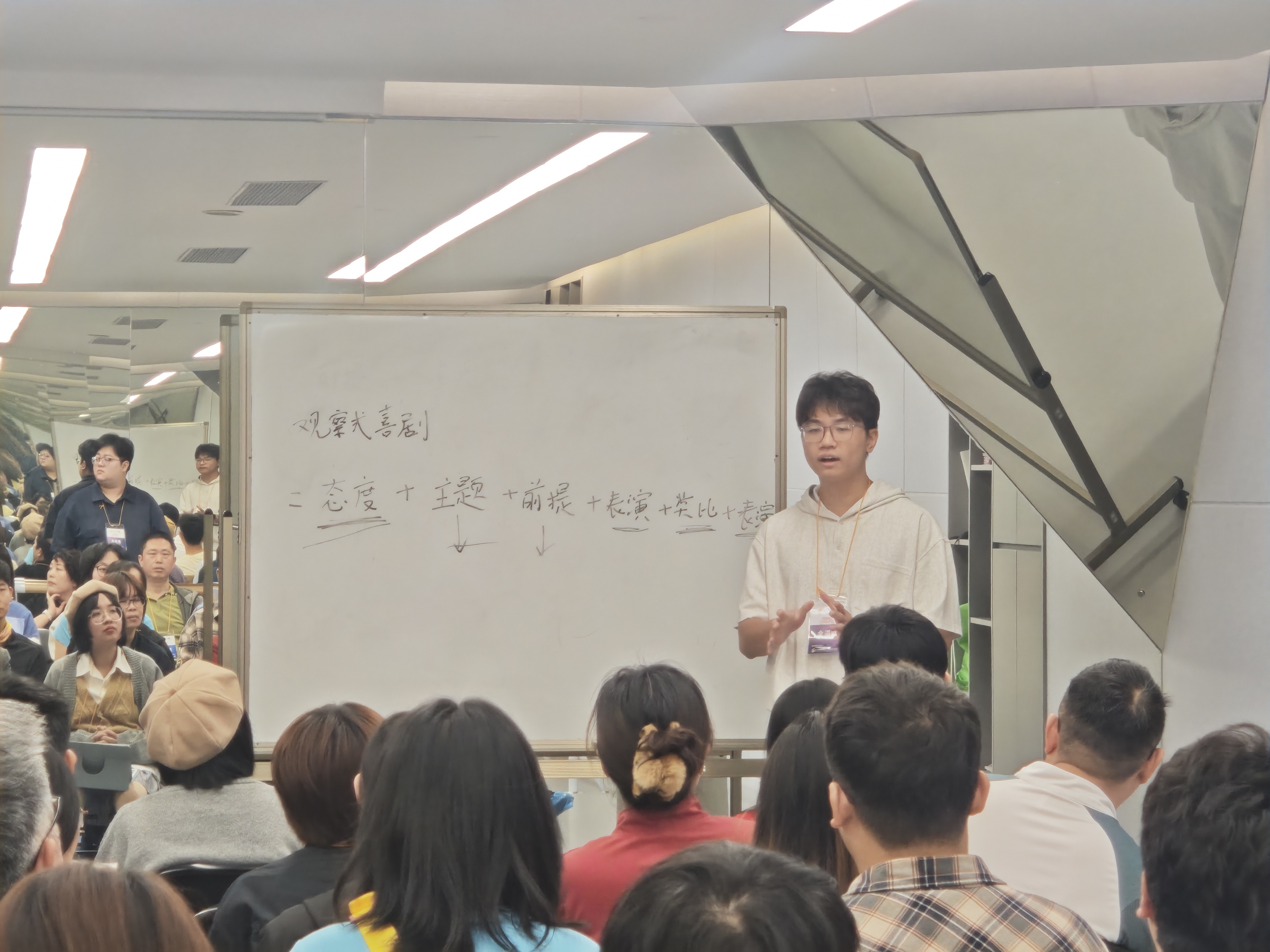 助教大水为大家提供案例示范:“坐刚考完驾照的朋友的车,让我感到困难”,大家心领神会,瞬间理解了笑话的源头。大水的身上有许多标签:好说喜剧首席编剧、东莞市青年演说家、《机器人奇妙夜2026》编剧······