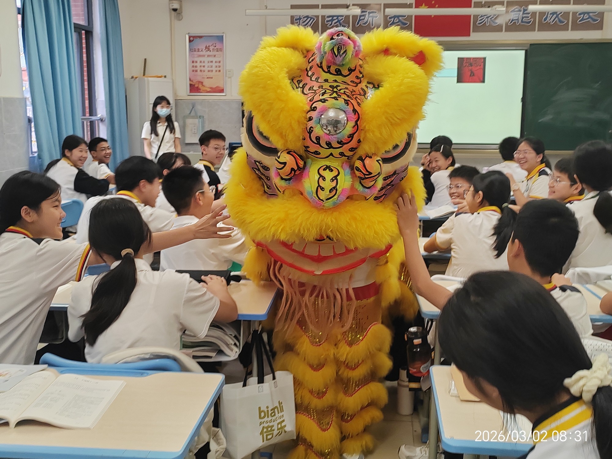 开学日,佛山一中三水学校醒狮走进课堂。 受访者 供图