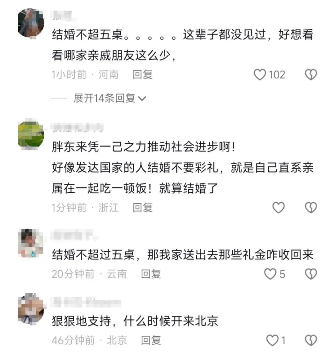 网友纷纷评论:“结婚不超五桌,哪家亲戚朋友这么少”“狠狠地支持”“胖东来凭一己之力推动社会进步”……
