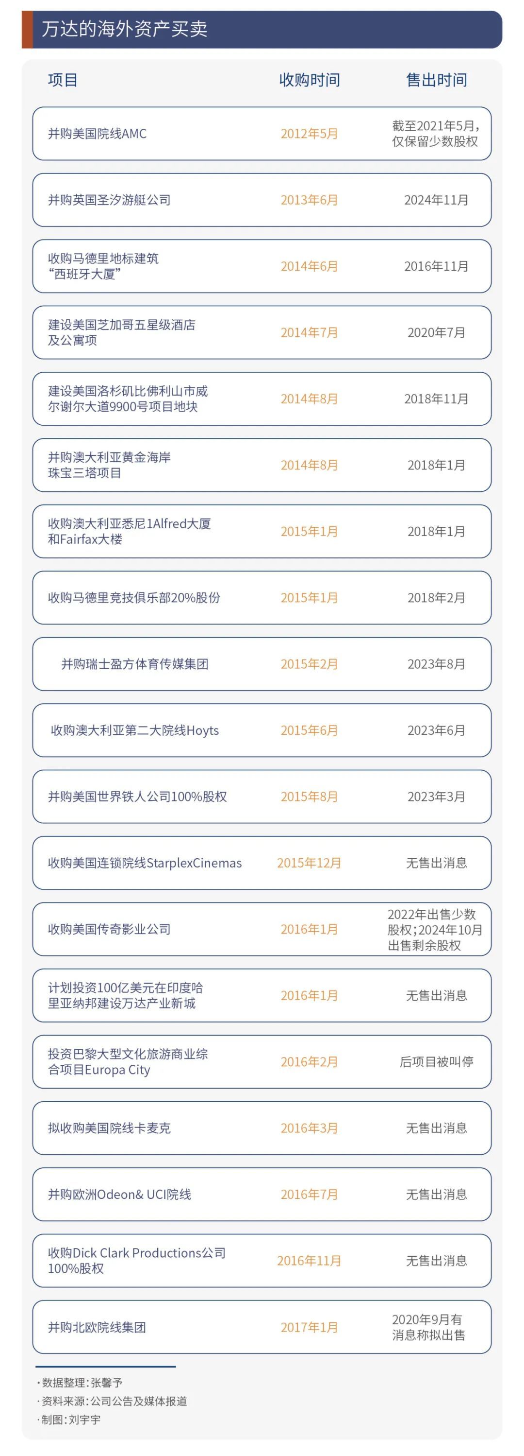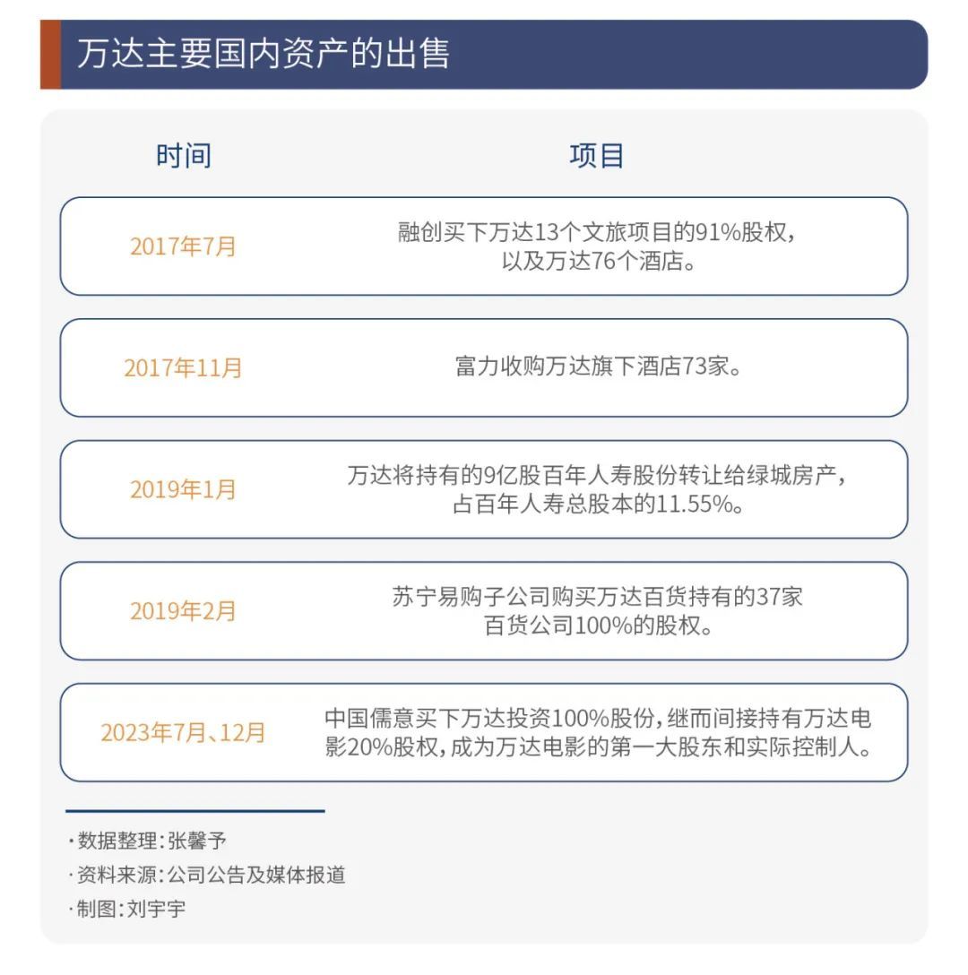 但从2017年开始,这四次转型的成果被一一抛售。文旅、酒店卖给融创与富力,电影卖给儒意,百货卖给苏宁,百年人寿卖给绿城,并清空了AMC、游艇等大部分海外资产。