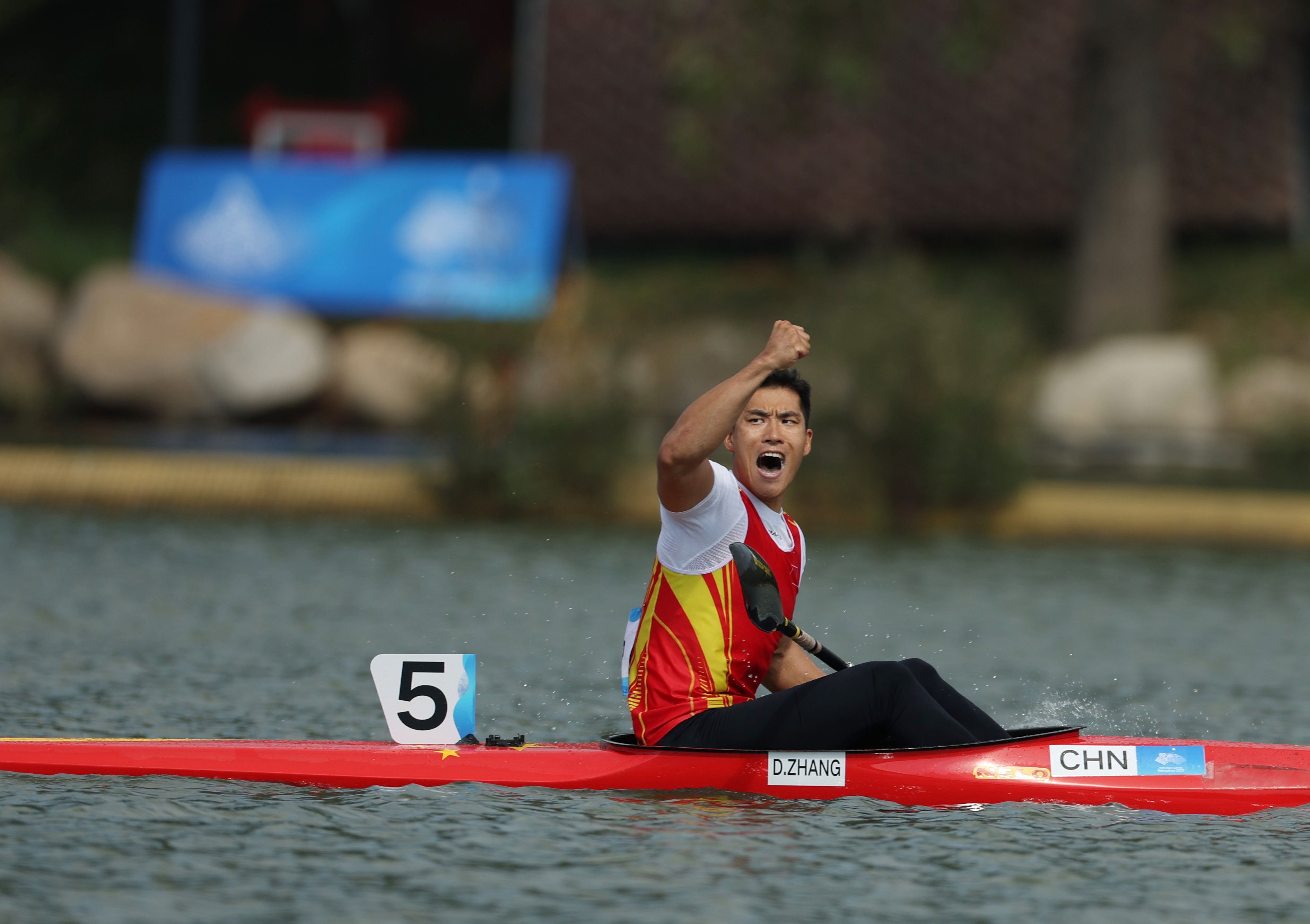 在率先开赛的男子1000米单人皮艇决赛中,中国选手张冬率先冲线,为中国队取得开门红。