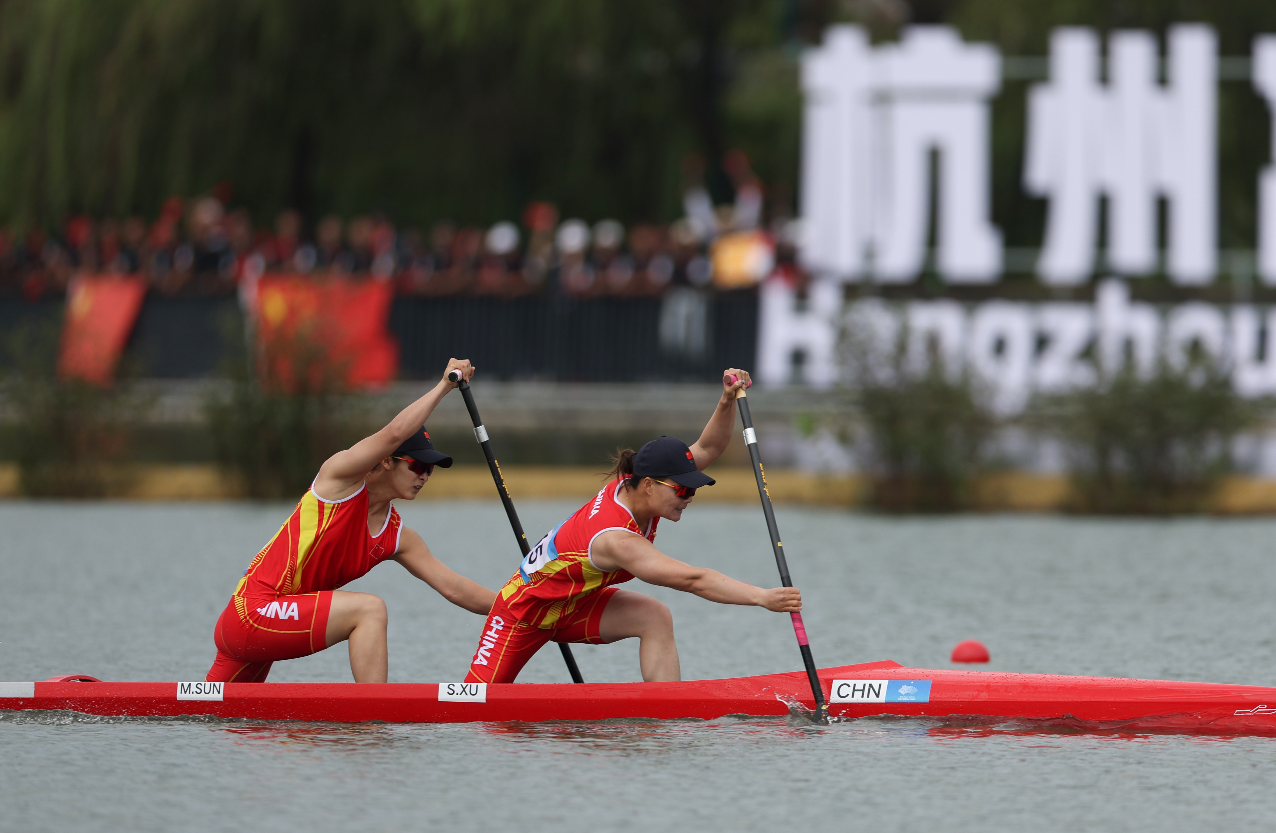 随后,东京奥运会冠军组合孙梦雅/徐诗晓在女子500米双人划艇比赛中,为中国队再夺1金。中国组合王楠/殷梦蝶则在女子500米双人皮艇决赛中夺冠。