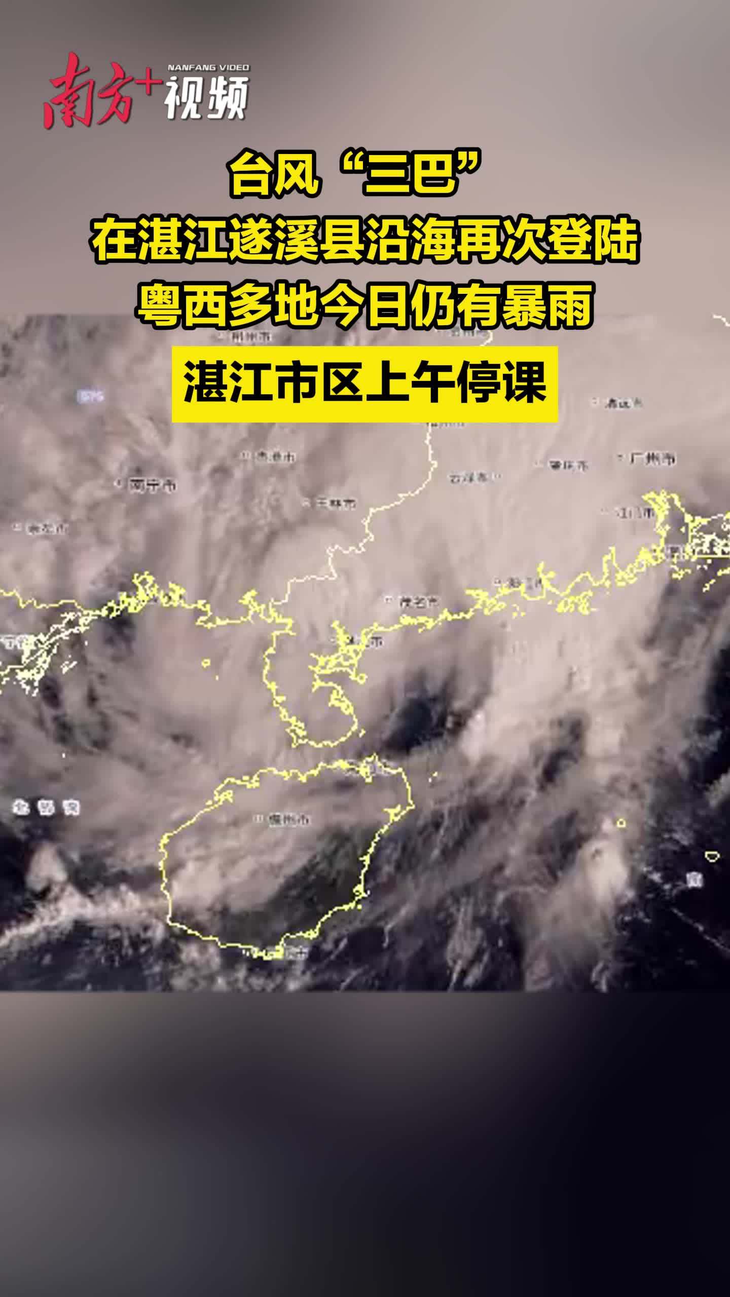台风“三巴”在湛江遂溪县沿海再次登陆,粤西多地今日仍有暴雨
