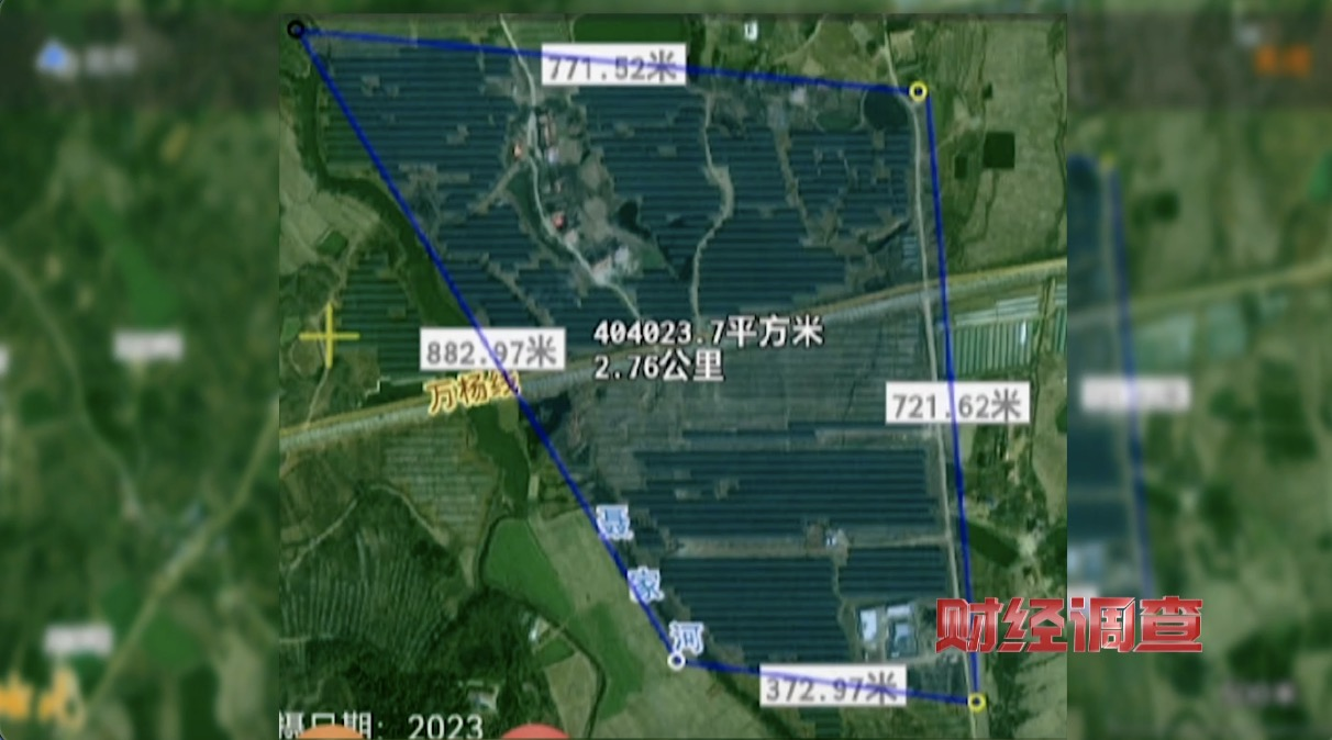 但在群众举报的具体地点,记者发现了与田园风光格格不入的一幕,一大片光伏阵列,矗立在连片的稻田里,格外显眼。
