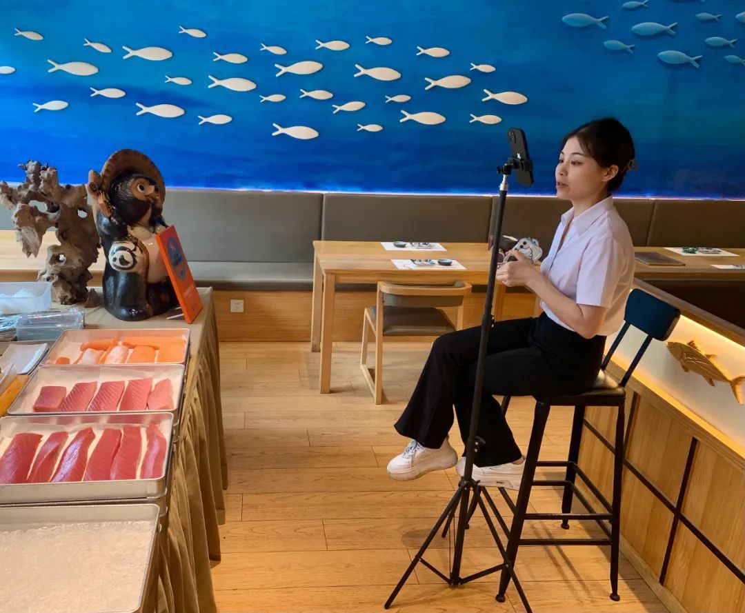 2022年年末起,为拓宽销路,万叶开始尝试直播,左侧盒子为各个部位的金枪鱼肉。