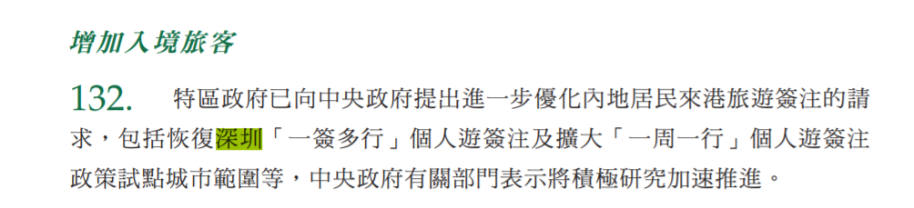 李家超表示,特区政府已向中央政府提出进一步优化内地居民来港旅游签注的请求,包括恢复深圳“一签多行”个人游签注及扩大“一周一行”个人游签注政策试点城市范围等,中央政府有关部门表示将积极研究加速推进。