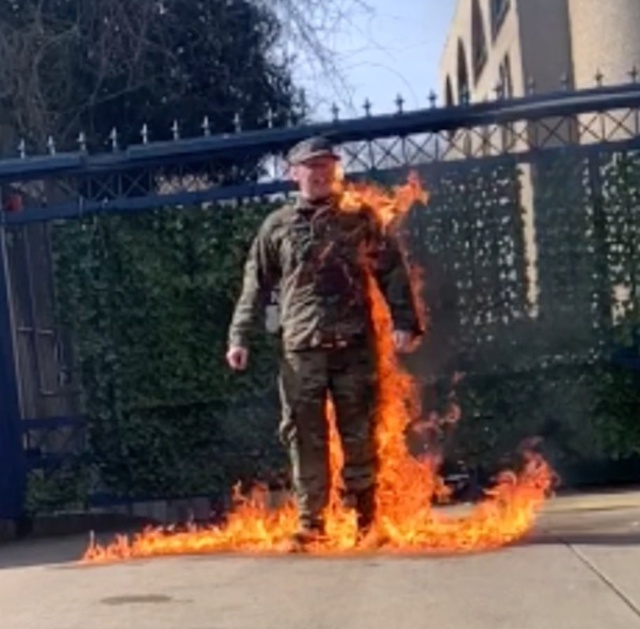 突发!一名“美军军官”在以色列大使馆门前自焚