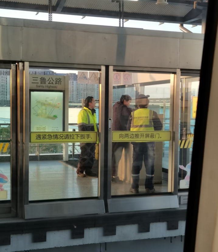 网友称浦江线三鲁公路站发生故障。8日7时许,有网友发帖称,上海地铁浦江线发生故障,他在三鲁公路站无法上车。他拍摄的现场图片显示,有多名工作人员正在站台上查看设备情况。