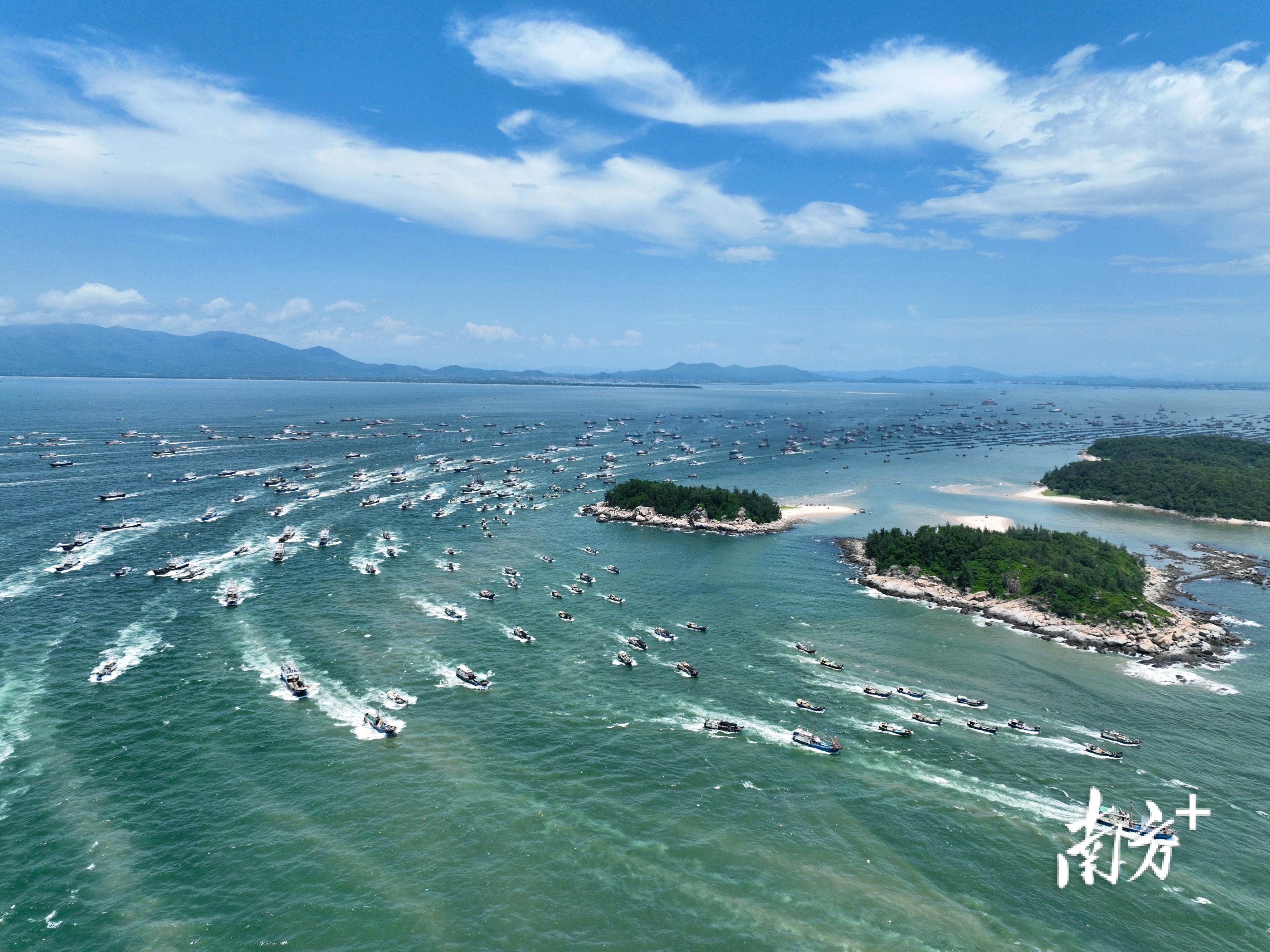 一声开渔令下,在领头船的带领下,900多艘渔船从闸坡渔港向着大海出发,辛勤的渔民开始谱写耕海牧渔的新篇章。