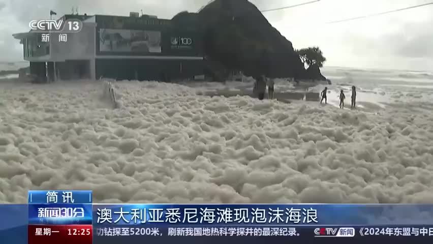 悉尼一海滩被泡沫海浪覆盖好似积雪