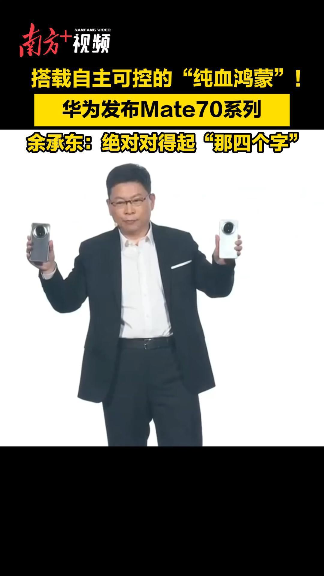 余承东评价华为Mate70:绝对对得起“那四个字”