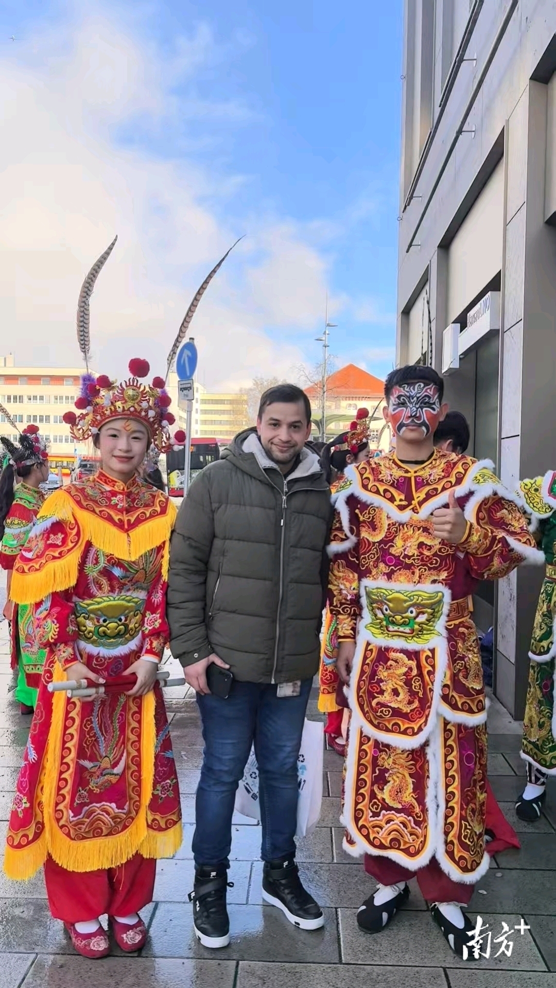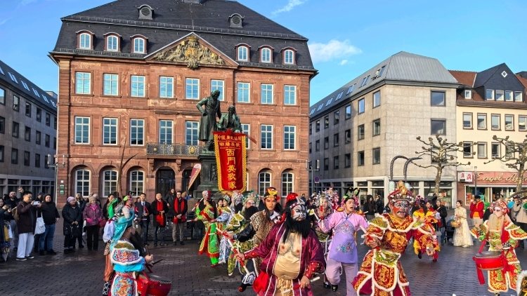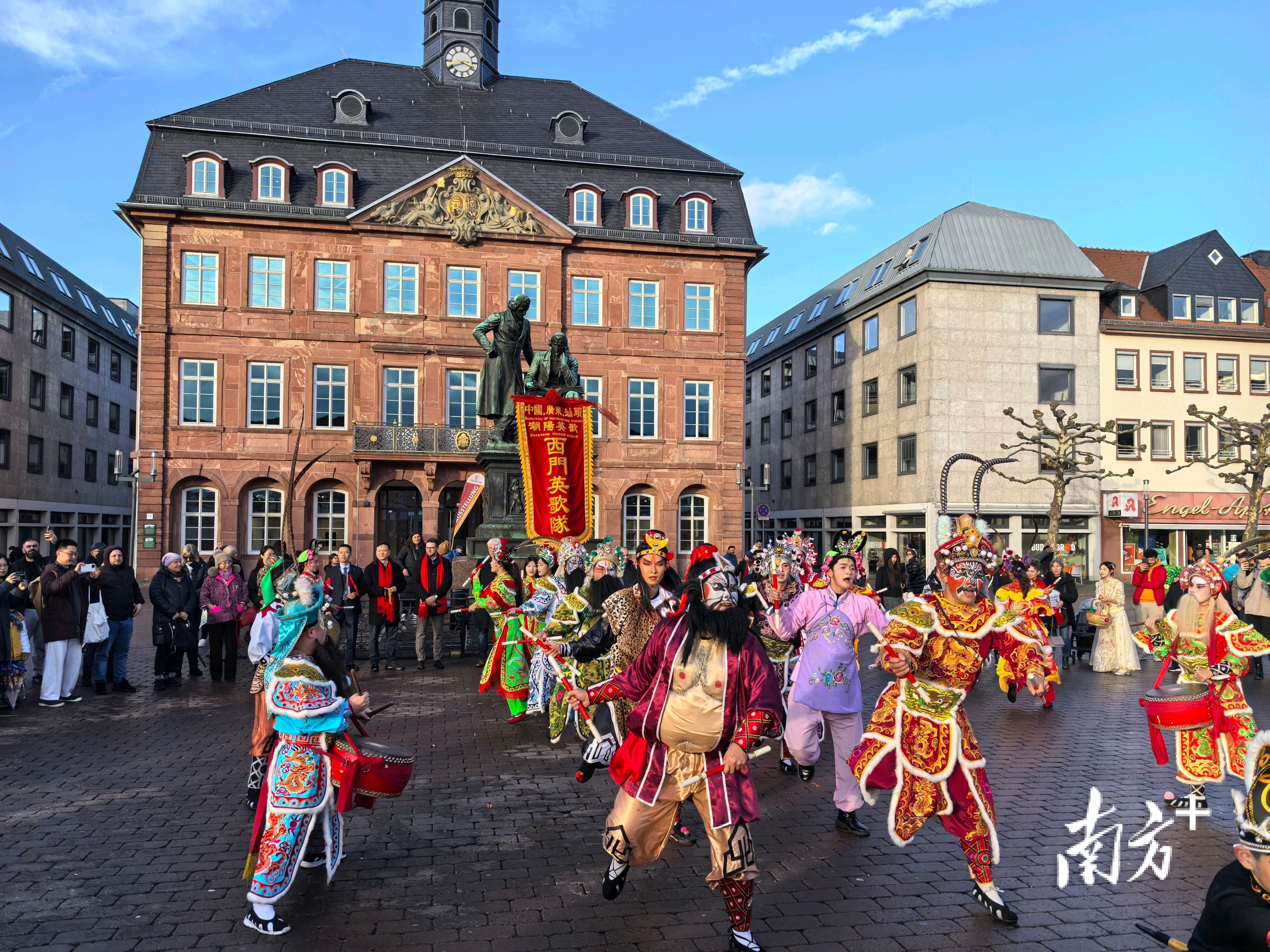 当地时间1月29日(大年初一)15时,节奏明快的锣鼓声在德国哈瑙市自由广场响起。来自汕头潮阳的西门英歌队队员们身着盛装,挥舞整齐划一的木槌,踏着铿锵有力的鼓点,成为巡游队伍最亮眼的一道风景线。