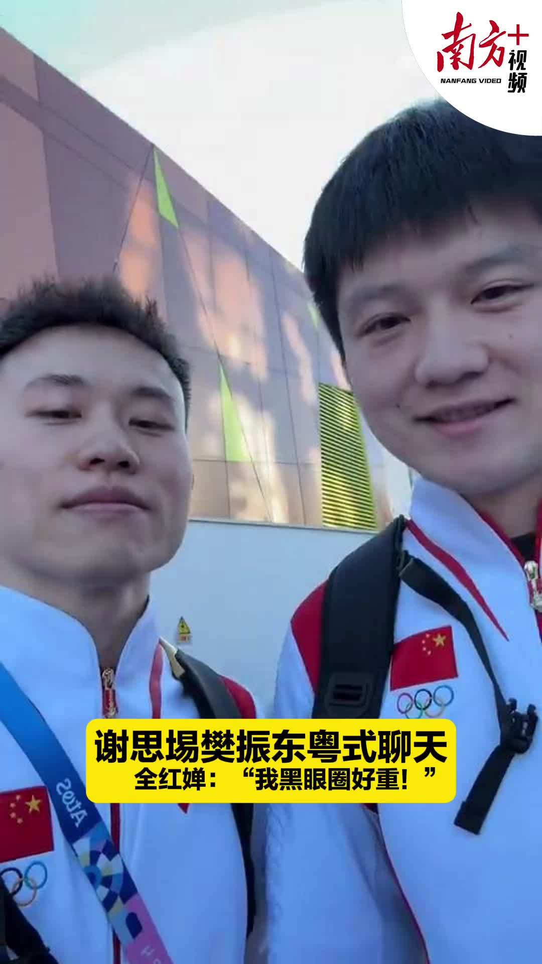 视频中,谢思埸用粤语询问樊振东的状态如何,樊振东称自己的嗓子喊哑了,最后几天不行了。谢思埸还不忘夸赞樊振东“圆满了,厉害”!全红婵也入镜,一脸疲惫,称自己“黑眼圈好重”。网民大呼:广东人见面打招呼就是这样的松弛!