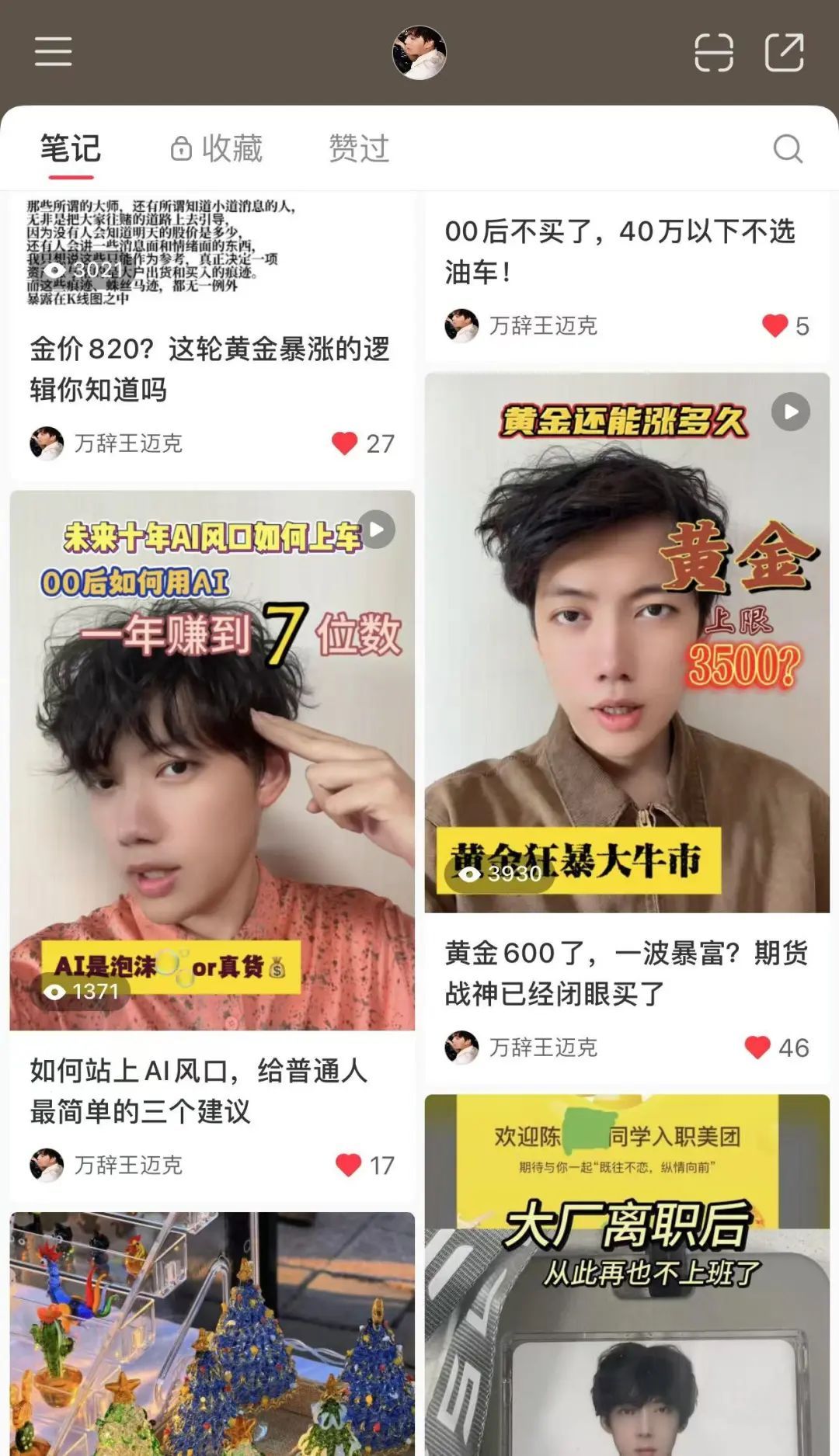 从几家大公司辞职后,迈克打开了另一条人生路径。他在小红书做自媒体博主,以“万辞王”为名发帖展示自己的辞职经历,很多迷茫的求职者纷纷找上门来,他开始发展私域,给一些网友做心理疏导和职业规划。