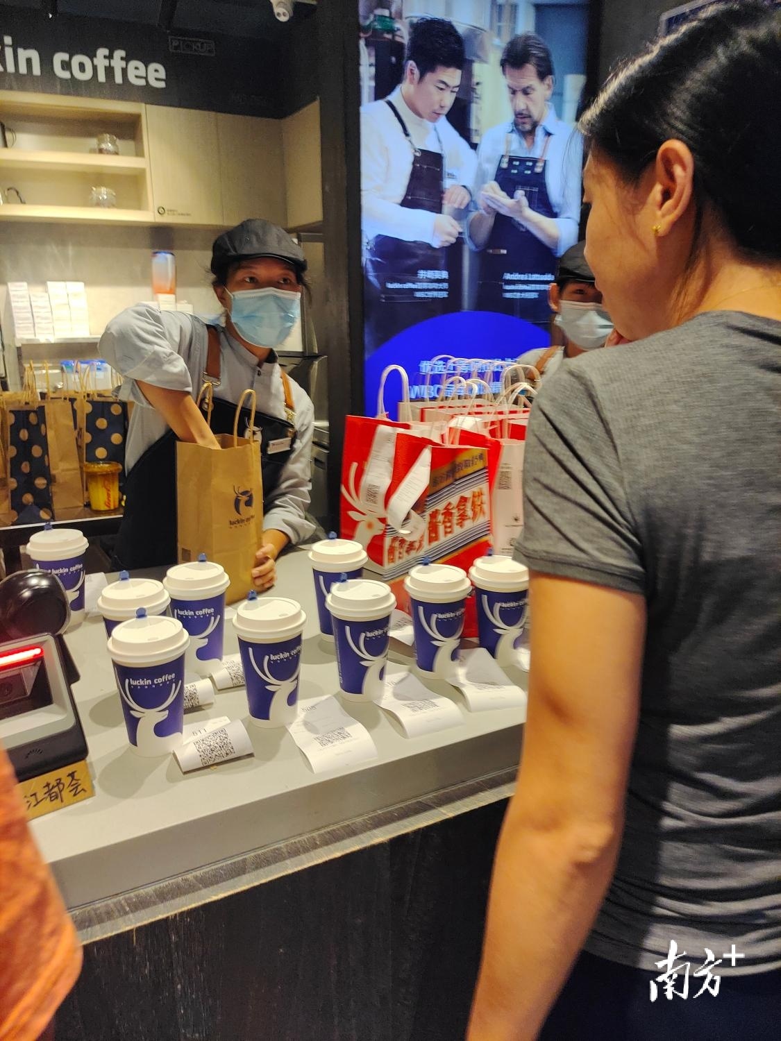 9月4日下午,瑞幸咖啡广州华景大厦店门店排满了人,记者了解到,其中大多数都是来买联名款“酱香拿铁”,因人气太火爆,该门店的冰块已告罄,只有“去冰”和“热”两种温度可供选择,但前来购买的顾客仍然络绎不绝。
