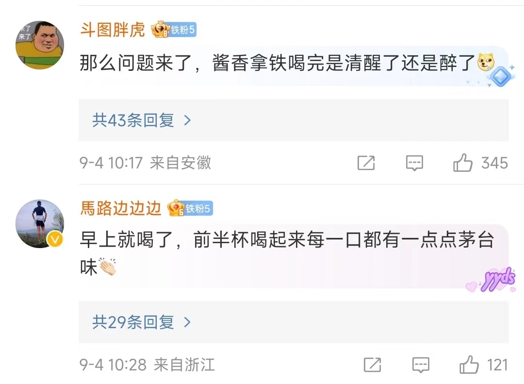 对此,一些网友也提出含酒精咖啡的疑虑。瑞幸官方小程序客服回应称:酱香拿铁使用白酒风味厚奶,含53度贵州茅台酒,酒精度低于0.5%。此外,该款饮品内含有酒精,酱香拿铁酒精含量低于0.5度,未成年人、孕妇、驾驶人员、酒精过敏者不建议饮用。