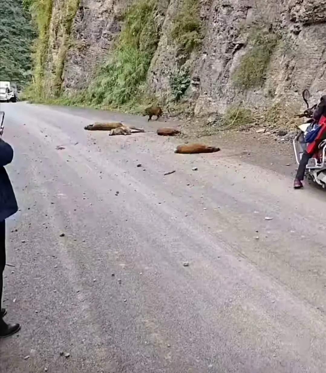 就在野猪入侵南京高铁联络线酿成悲剧当天,另一头野猪闯入南京一酒店大堂,匆忙逃跑时撞上了玻璃门。同日,在云南永善县驾车行驶的女子路遇六头野猪“从天而降”。这些野猪从路边的百米高崖上跌落,五头当场毙命,一头则跌跌撞撞地跑回山林。