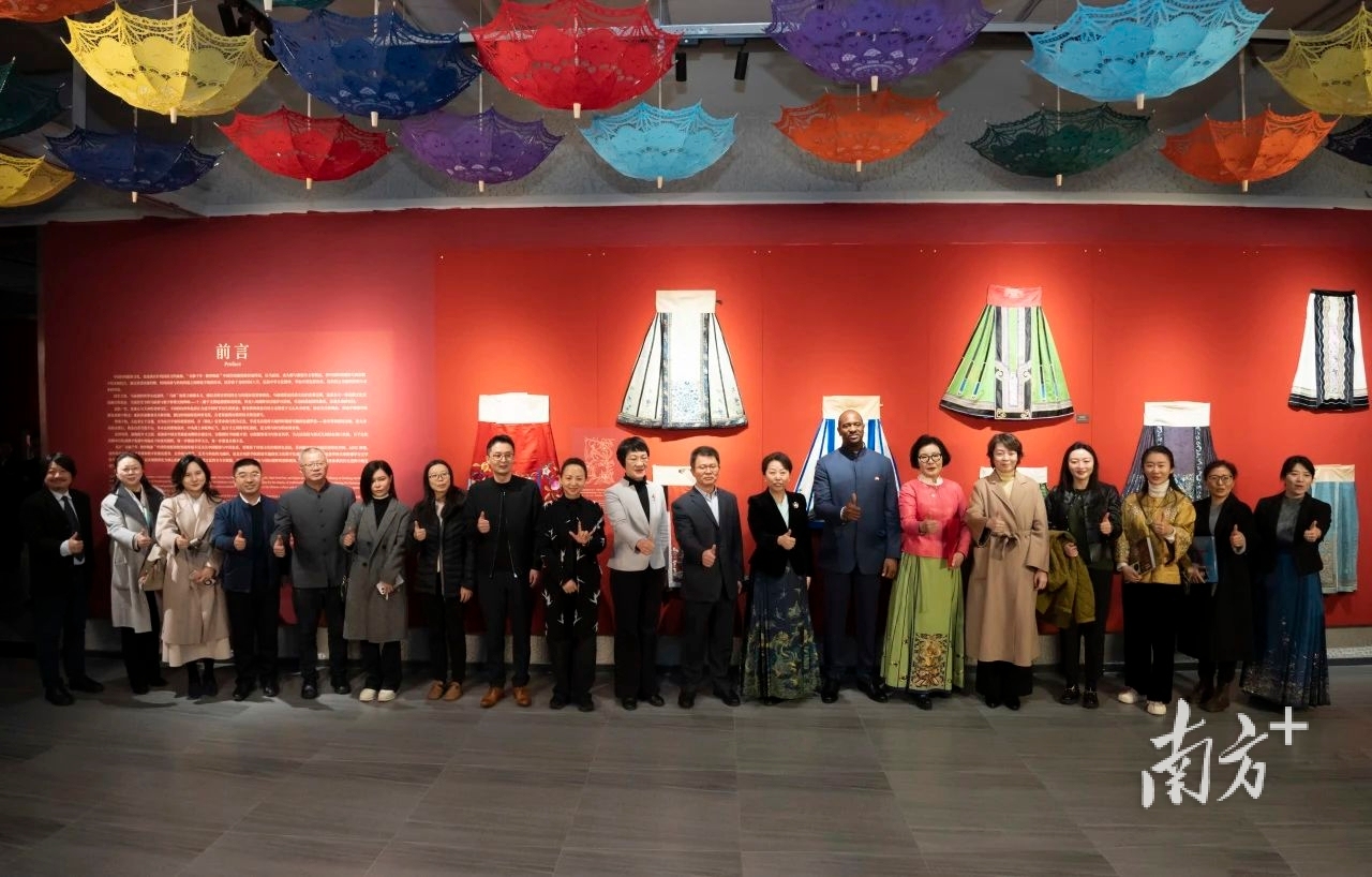 展览12日开幕当天,来自50多个国家的百余位驻华使节、高级外交官与外交人员服务局职工代表共同出席了该展。本次展览将马面裙、虎头帽、旗袍在数智时代中以现代数字技术再度焕新,充分彰显中国传统服饰文化的独特美学,让外宾们赞叹不已。